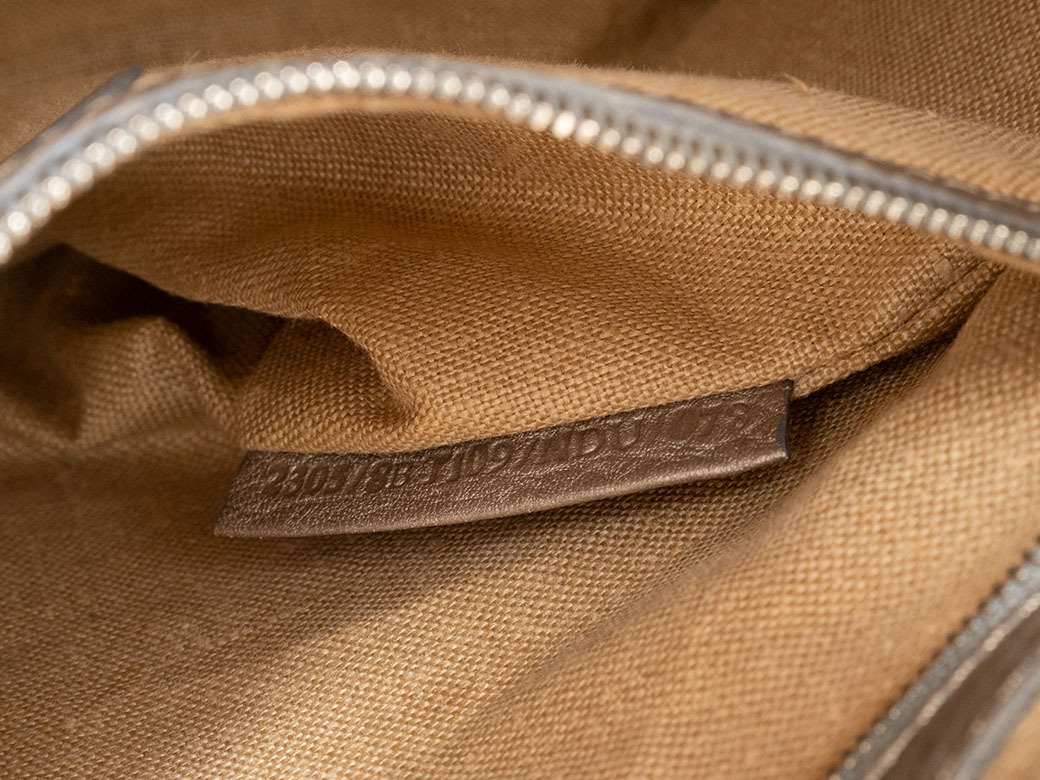 外側 | 若干型崩れ スレ スレキズ シワ 角スレ フチスレ コバに亀裂 ショルダーにフチスレ、毛羽立ち、ヨレ、レザーの反り 金具に小キズ、スレキズ、変色 |