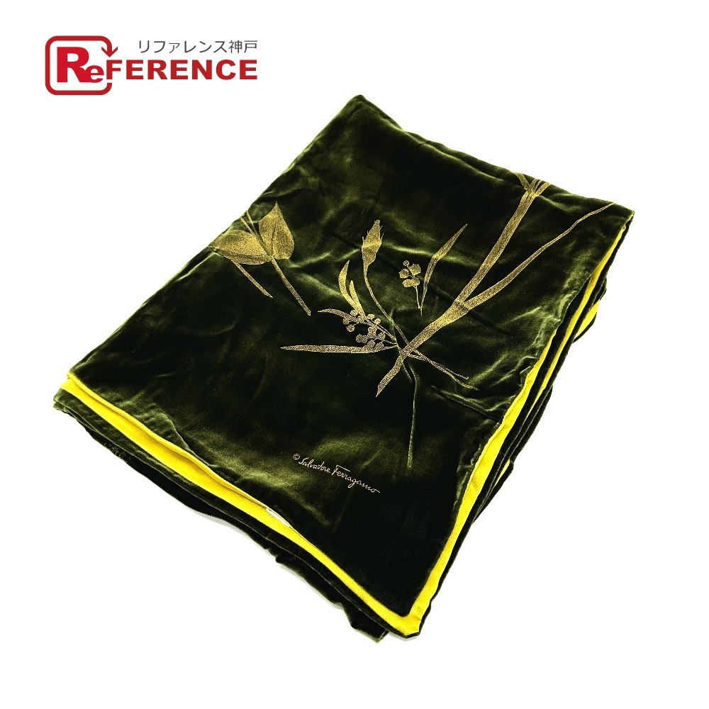 新品同様 Salvatore Ferragamo サルヴァトーレフェラガモ plantモチーフ ストール グリーン レディース【中古】