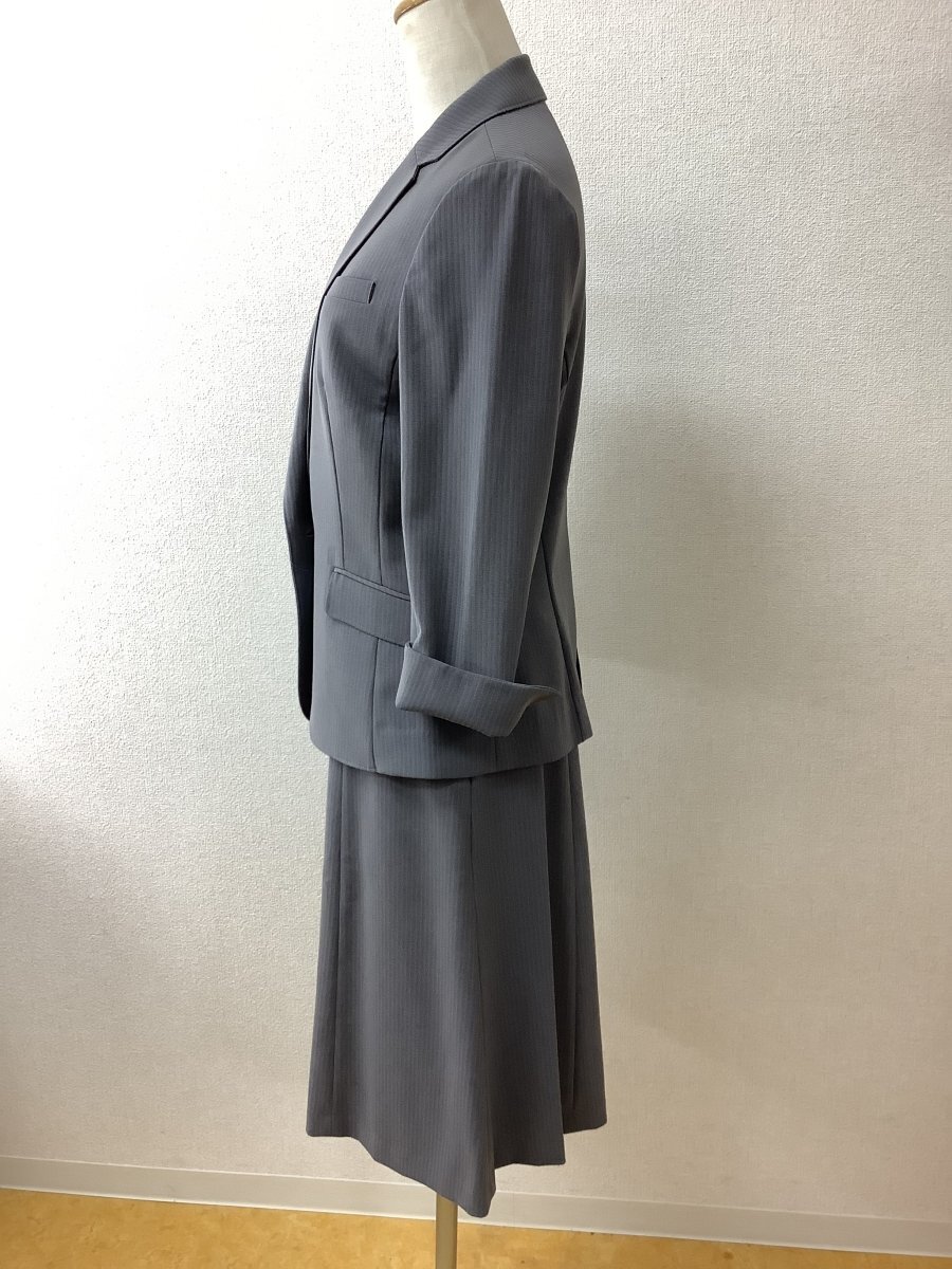 | 管理番号:10^137678 ru グレーピンストライプスーツ ジャケット裏地なし 表示サイズ:上下ともL 実寸(参考)