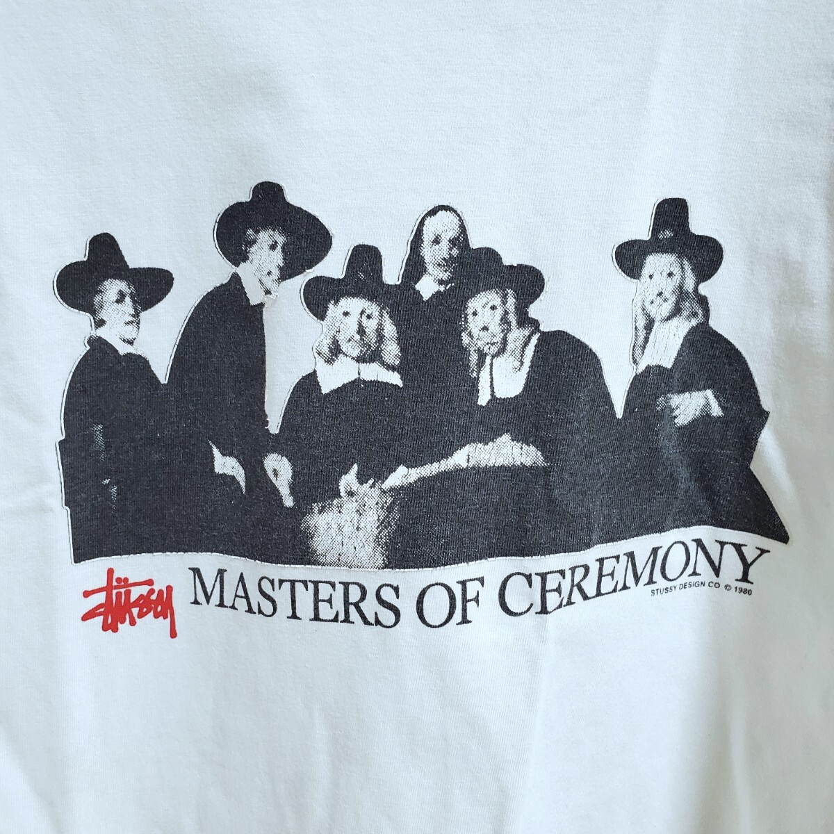 ホワイトのTシャツにMASTERS OF CEREMONYのグラフィックプリント。