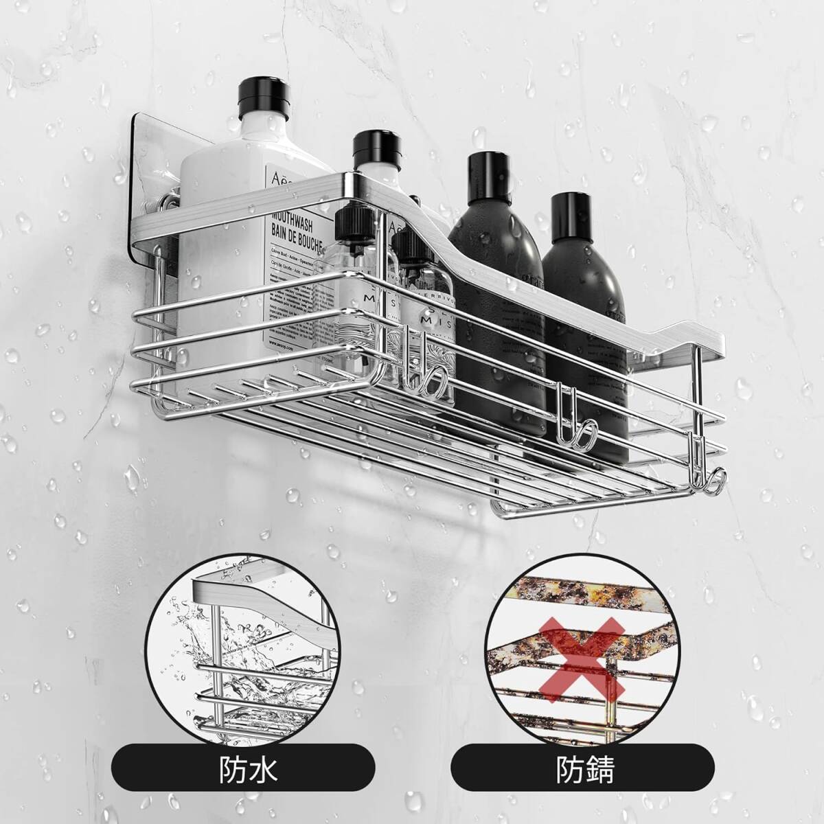 ラグジュアリーなバスタイムを演出 高級ホテルのようなバスルームラック 浴室用ラック フック5個付き ステンレス 強力粘着固定