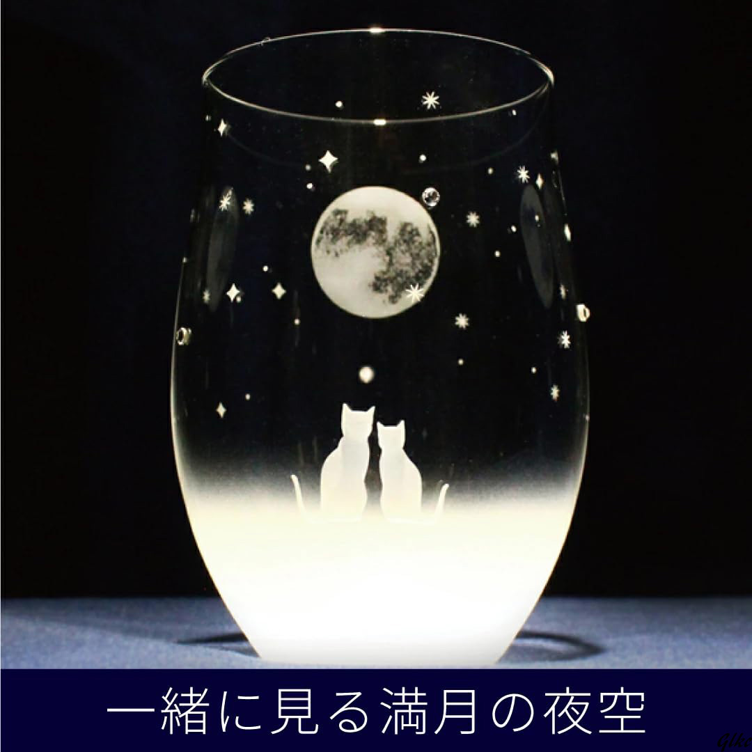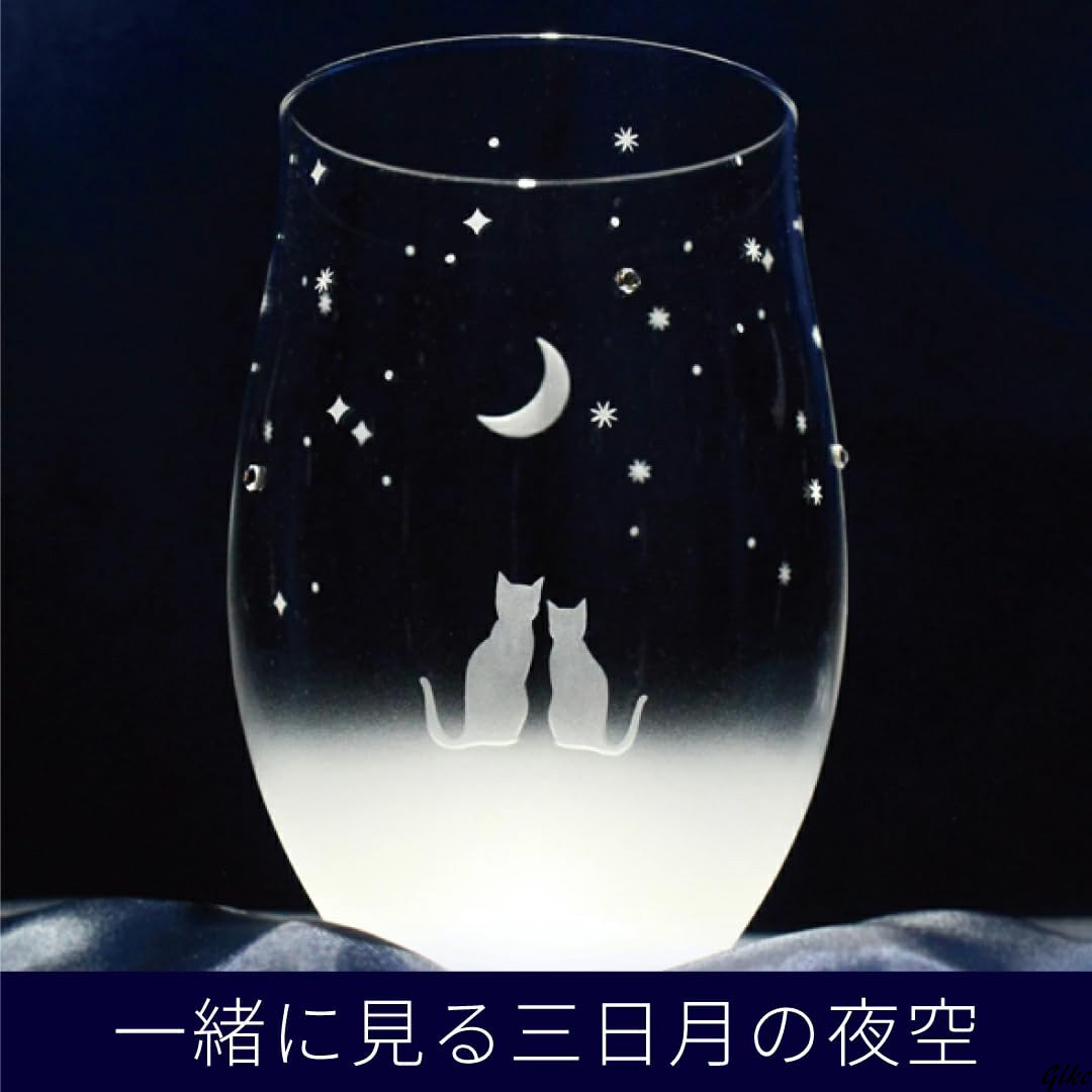 【軽くて口当たりの良い薄づくり口部仕上げ】 猫グラス ペアセット ギフト サンドブラスト 猫モチーフ プレゼント 満月 三日月デザイン