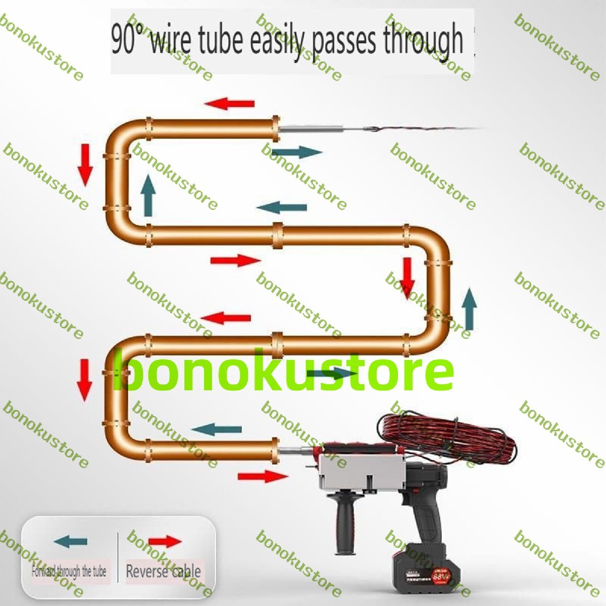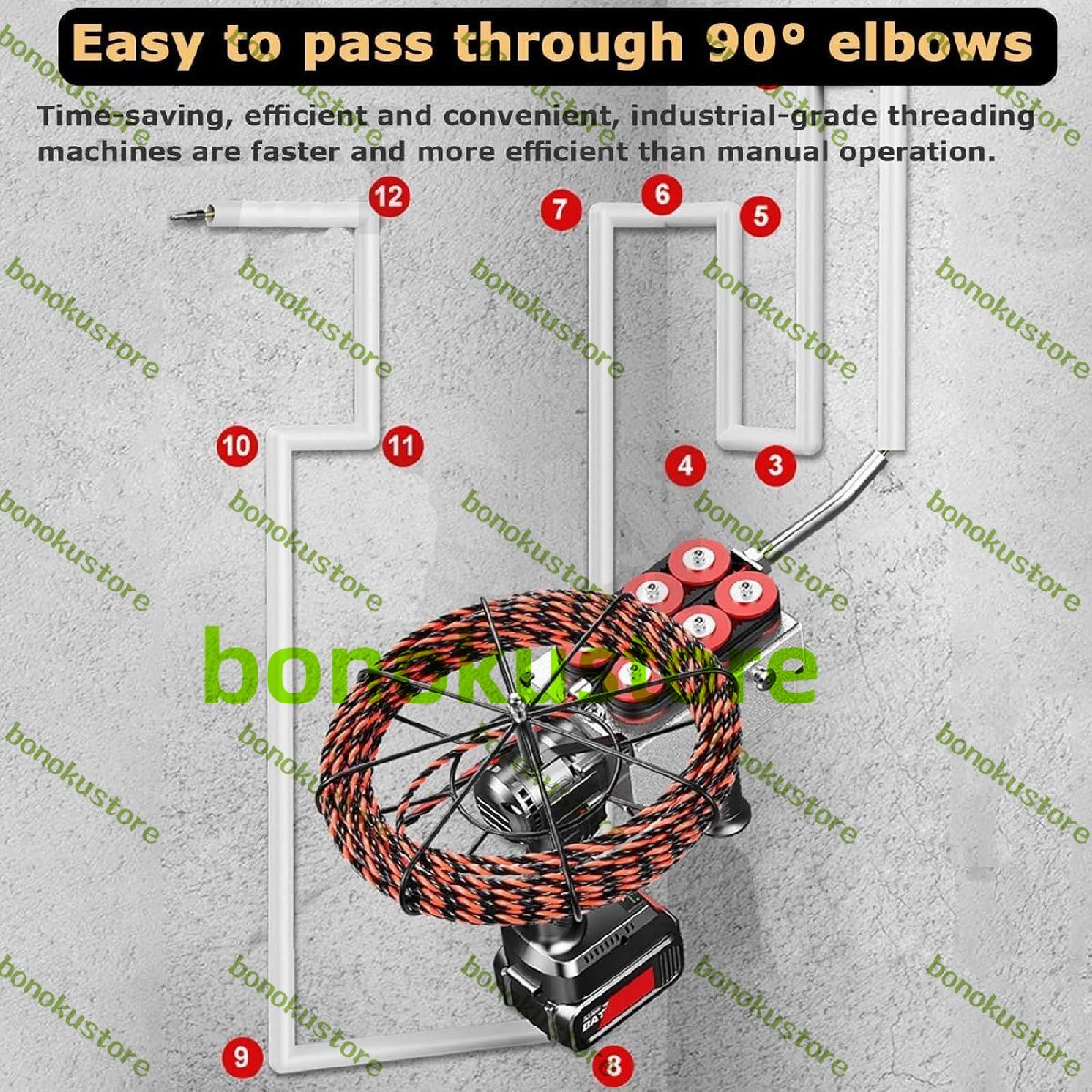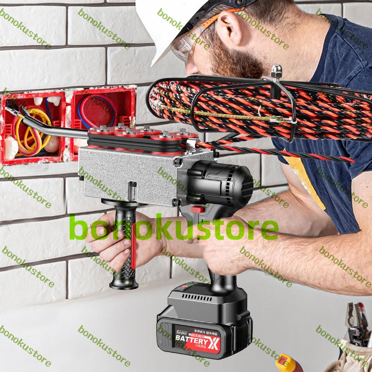 コードレスワイヤープーラー: この壁取り付け式ワイヤープーラーは、電気技師がワイヤーを通すときに非常に役立ちます。この電気技師用ワイヤー牽引機は、直線でも曲線でも、12個の90°チャンネルを通してワイヤーを簡単に牽引でき、牽引力は最大150kg、ワンボタンの糸通し/牽引制御、柔軟で便利です。