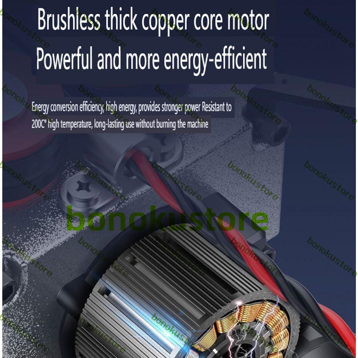 ブラシレスモーター:高性能ブラシレスモーターとタービンハウジングを採用し、より強力なパワー、より速い放熱、200℃の耐熱性と耐久性を備えています。ブラシレスモーターは摩擦が少ないため、機械全体の効率と寿命が向上し、カーボンブラシの交換やモーターのメンテナンスにかかるコストを効果的に回避できます。