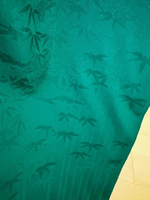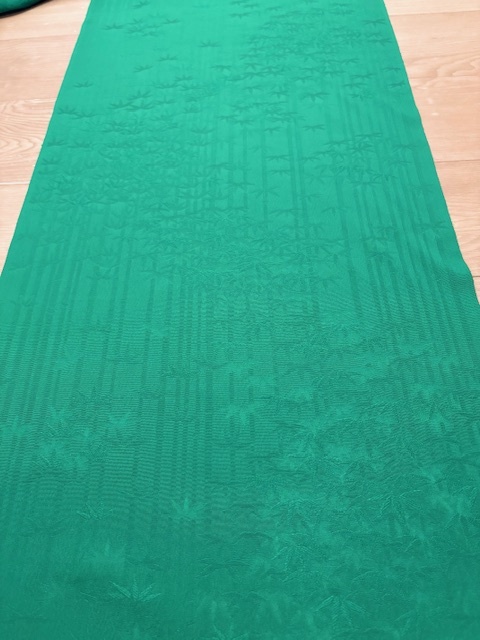 きもの★和布★古布 正絹 綸子縮緬 無地着尺 ハギレ(グリーン 竹)164㎝ 和柄 着物 無地