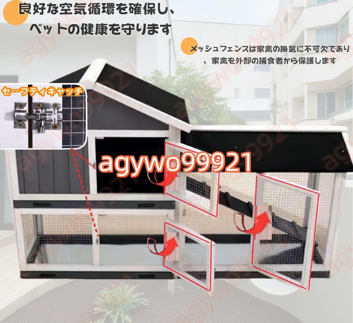 ??【広いスペース】屋外二層の設計で、広い空間を提供します。木製家禽ケージとしてだけでなく、小動物のアパートメントとしても使えます。鶏、ウサギ、アヒル、その他の小動物に非常に適しており、6羽の鶏を収容できます。