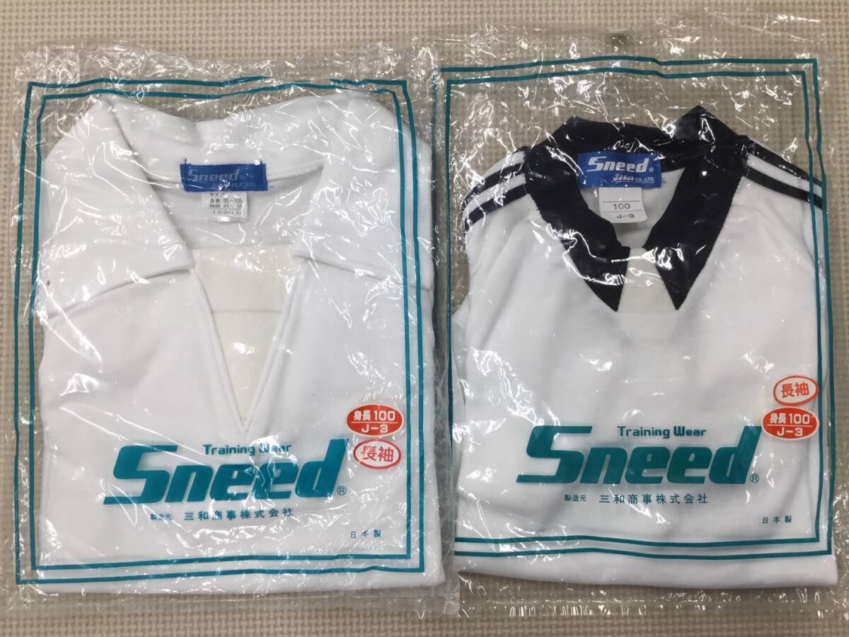S1247 未使用品【Sneed Sanwa】スクール スポーツウェア サイズ 100 2枚/衿付き/白/白x紺/長袖/男女兼用/男女小学生/男女児童/幼児