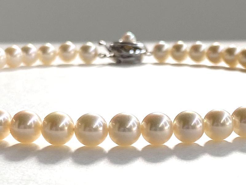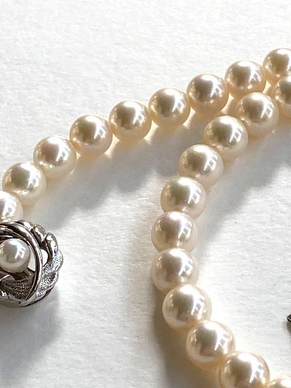 | この度は当店の商品をご覧頂き誠にありがとうございます。 あこや真珠ネックレスが入荷致しましたのでご提案させて頂きます。 7.5㎜アップの人気のサイズになります。 【状態】 見た目での真珠6大要素(大きさは上記参照)ご参考までに 色:照りのいいホワイトにピンクが入っており見事な干渉色を表しております。 照り:強い 形:ラウンド 巻き:厚い 傷:真珠特有のえくぼはございますが目立ちません。 | |