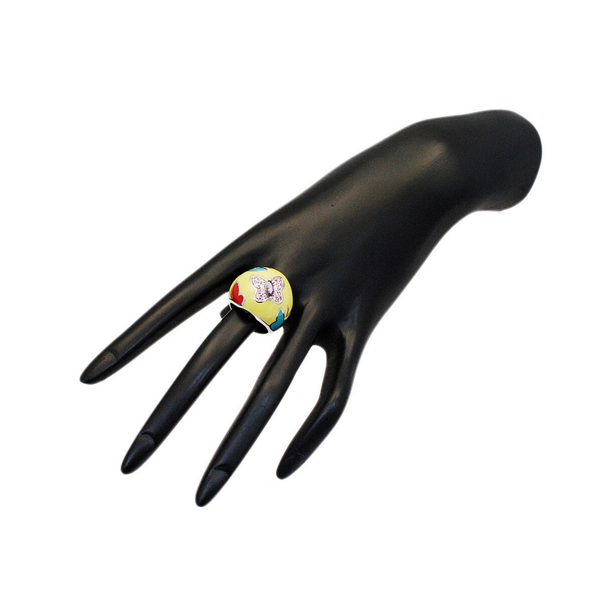 12号 バタフライエナメルジルコニア925シルバーロジウムメッキリング925刻印あり GF-19103Y
