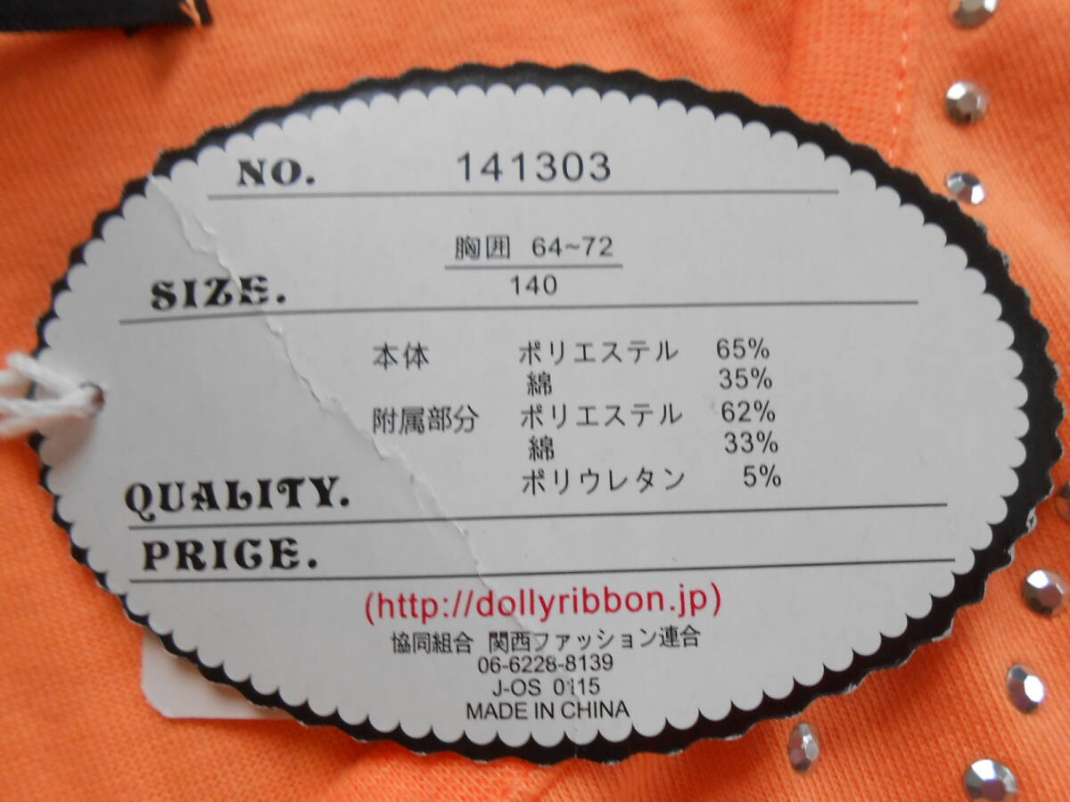 BB30☆ドーリーリボン タンクトップ ダンス系 スタッズ飾り オレンジ 140㎝ 新品未使用