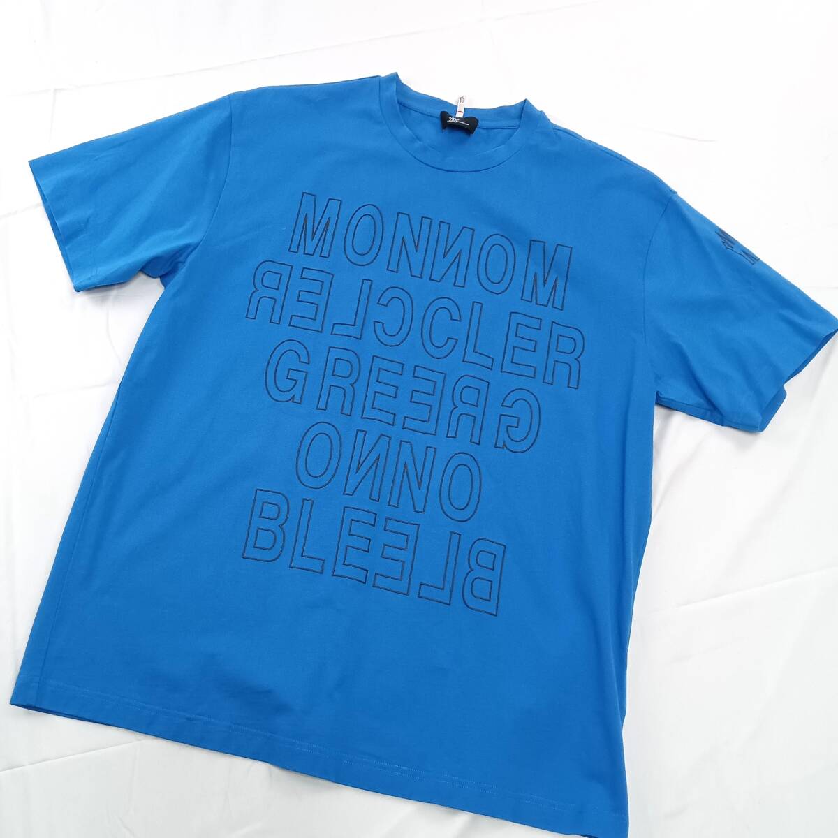 美品 MONCLER モンクレール 半袖Tシャツ ブルー プリントロゴ XLサイズ