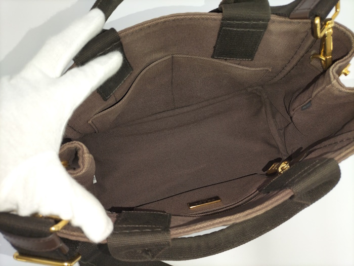 | ◆商品情報 | ・カラー:ブラウン ・素材/ライン:キャンバス ・サイズ:最大約 W28×H19×D14(cm) ・ショルダーの長さ:最大約119(cm) ※多少の誤差はご了承下さい。 ・内側:ファスナーポケット×1 オープンポケット×3 |