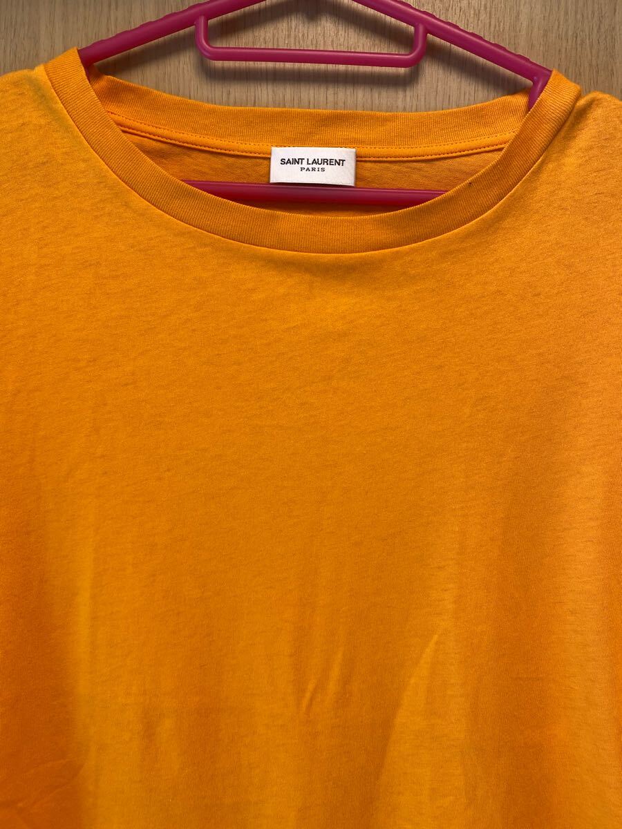正規 18SS Saint Laurent Paris サンローランパリ SL ロゴ 刺繍 エンブロイダリー クルーネック Tシャツ 橙 XS