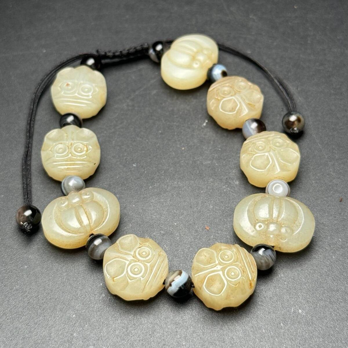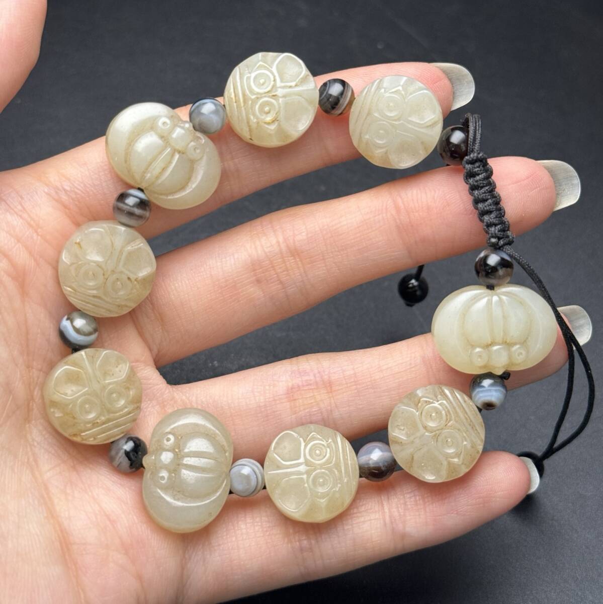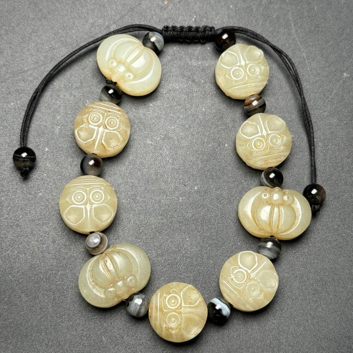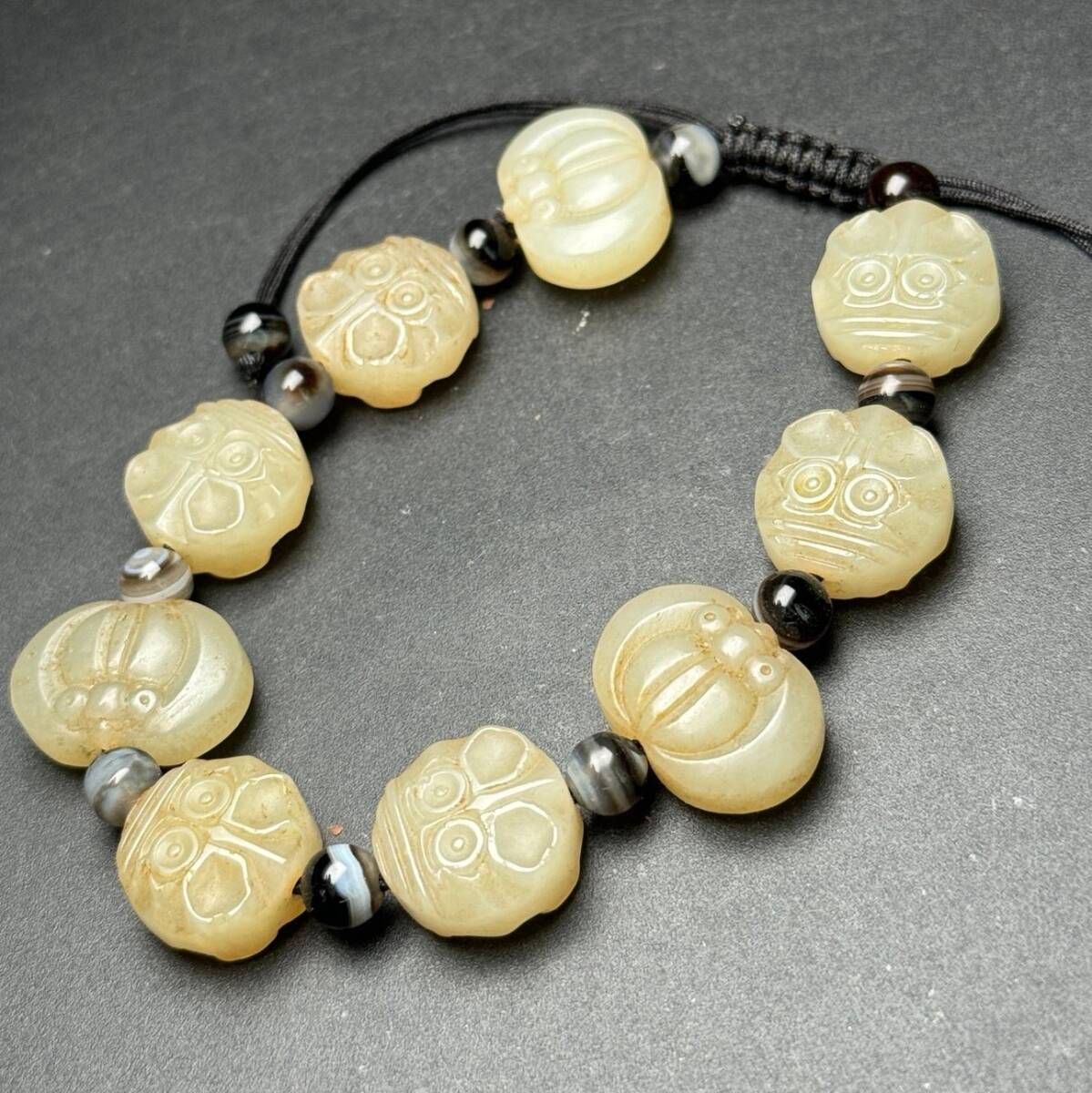 唐物 明清時期 玉彫 和田玉 手串 獸面 蝙蝠 福壽如意 玉質温潤 包漿一流 極細工 古美術品 時代物 中国古玩 骨董品 D67