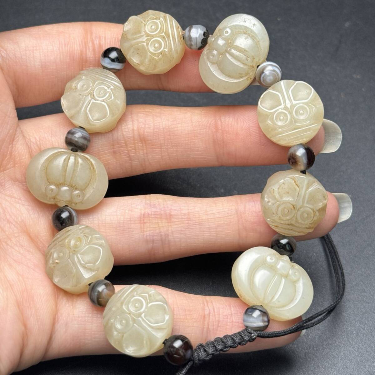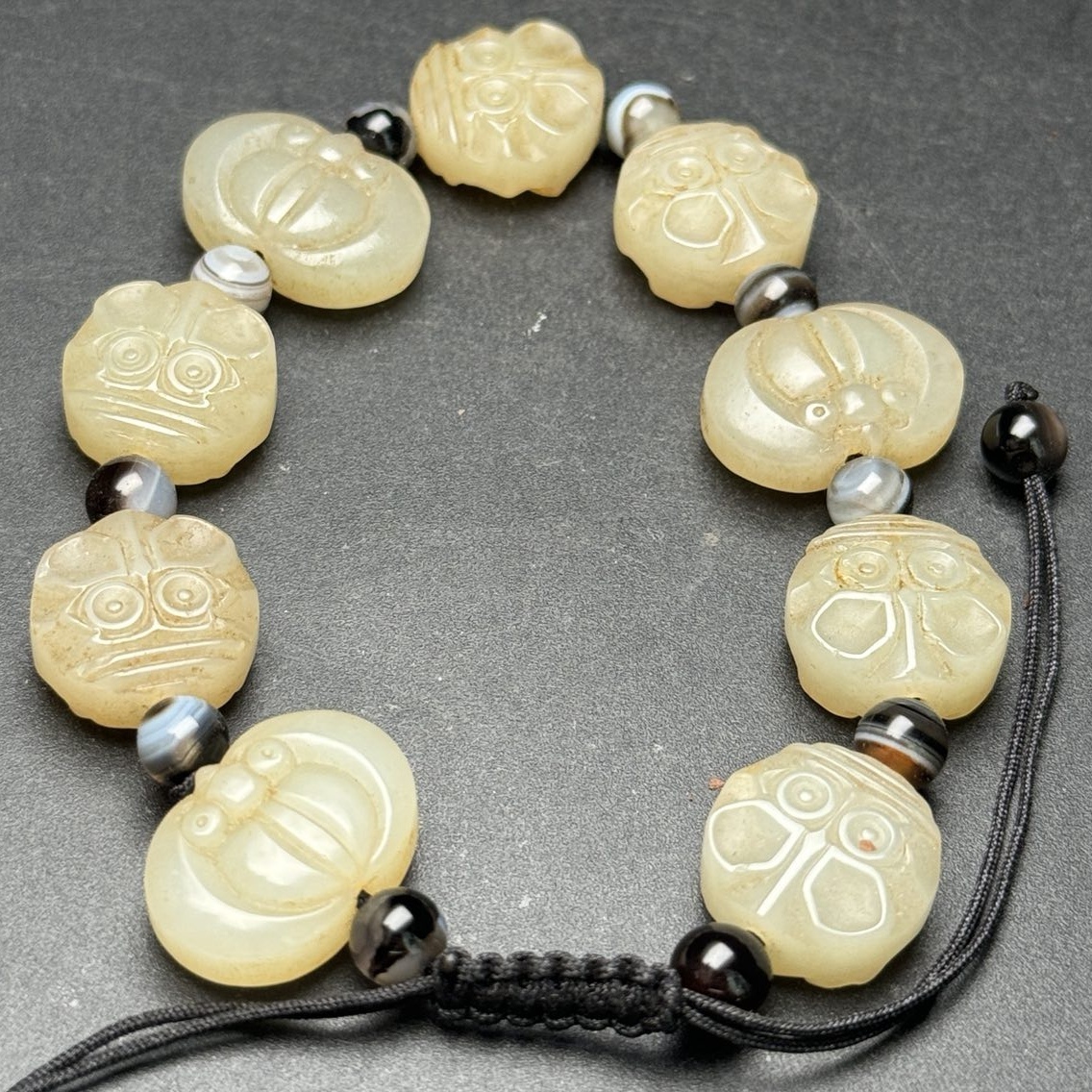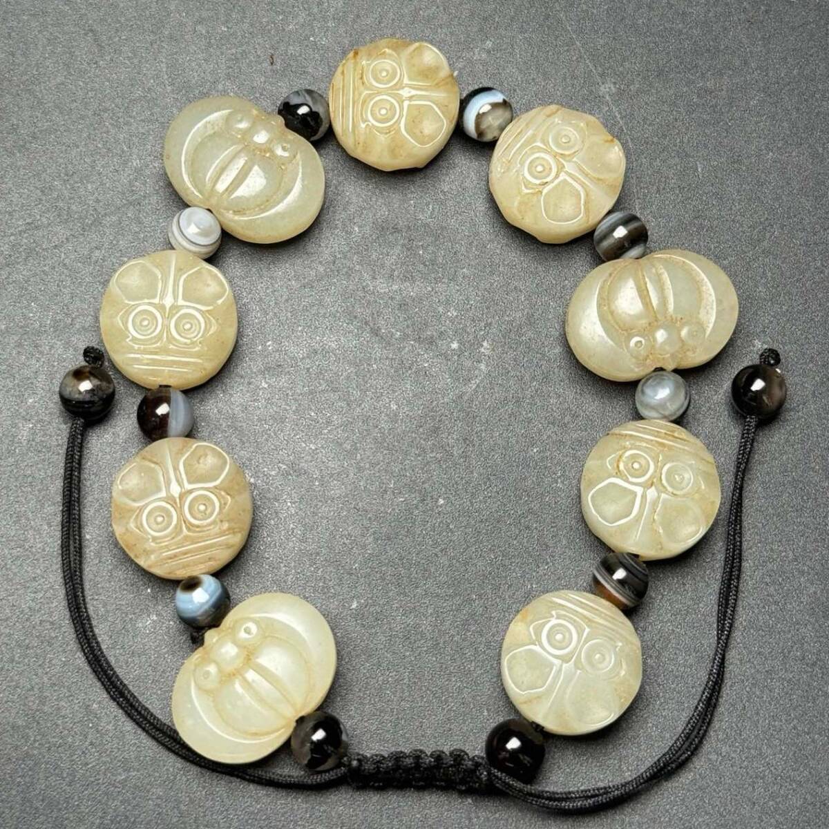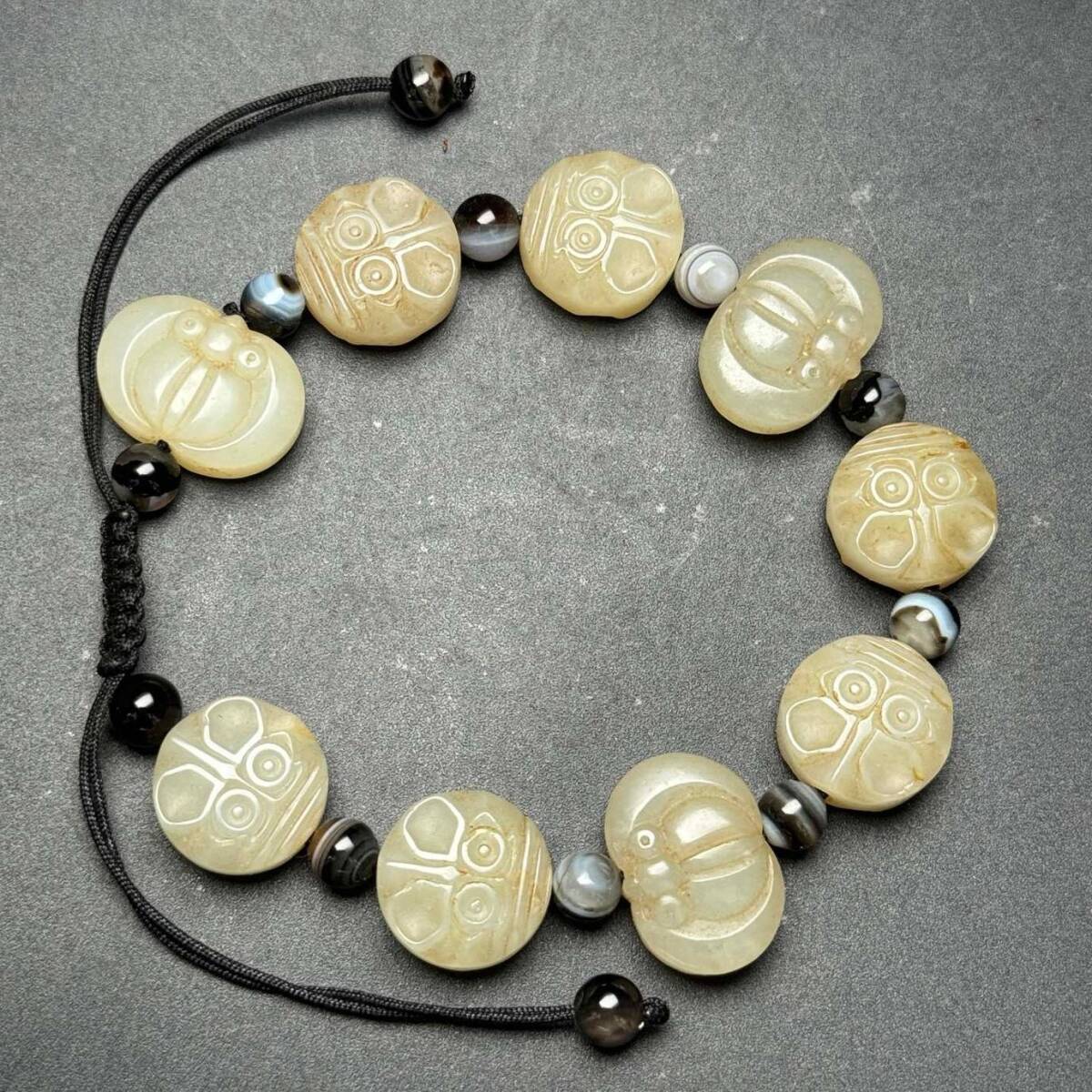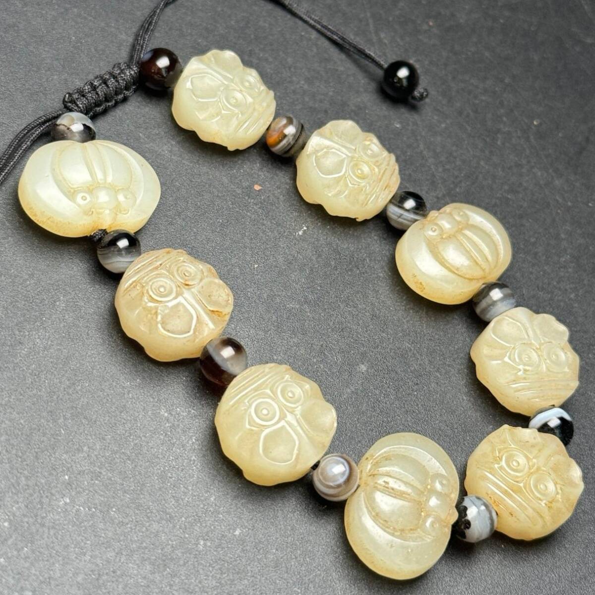 唐物 明清時期 玉彫 和田玉 手串 獸面 蝙蝠 福壽如意 玉質温潤 包漿一流 極細工 古美術品 時代物 中国古玩 骨董品 D67