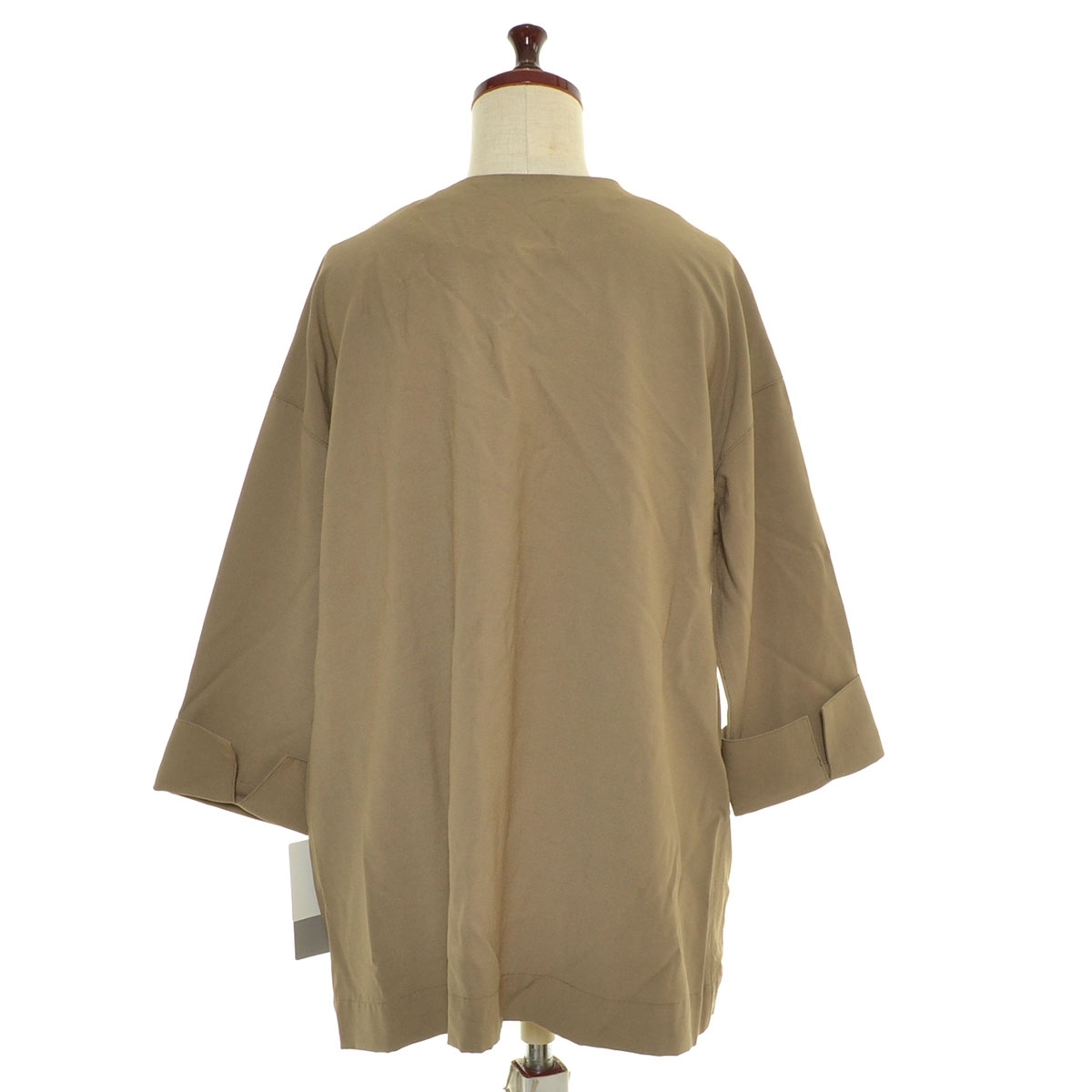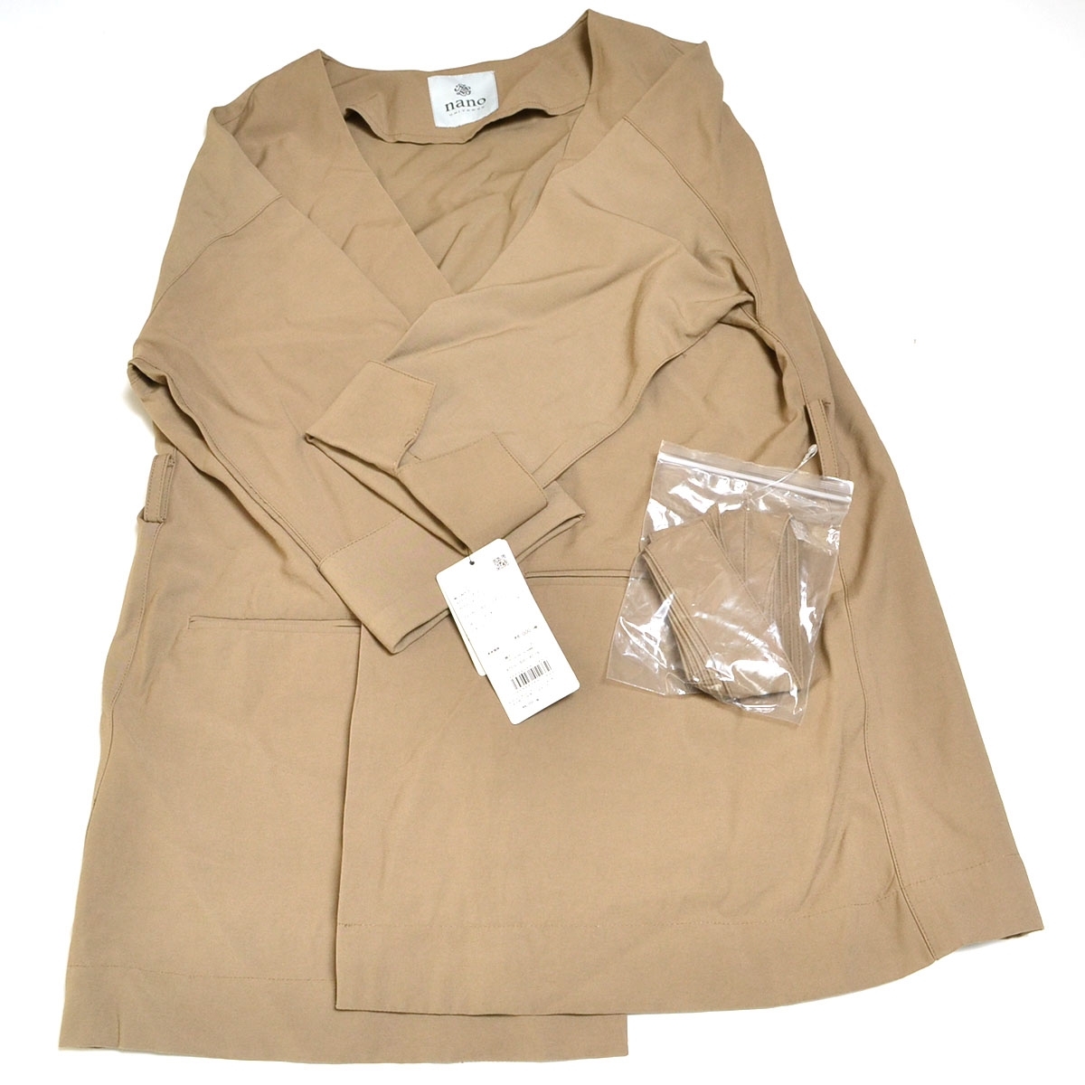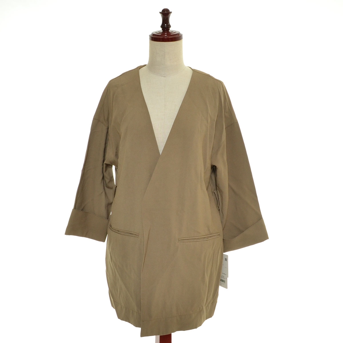 ■547504 未使用品 nano universe ナノユニバース ●ジャケット ベルト付ノーカラージャケット サイズF レディース カーキ