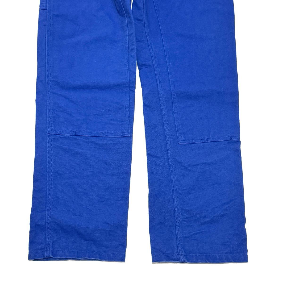 タフな質感で人気のダブルニー。鮮やかなブルーが映えるUSA規格の一着。程よい使用感がこなれた印象で、ワークスタイルやストリートにも◎。トレンドのバギーシルエット好きにもおすすめ。コットン100%のしっかり素材。