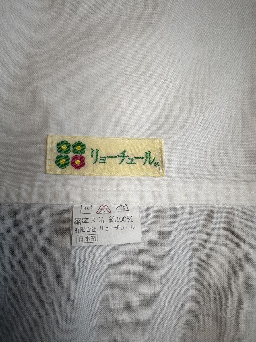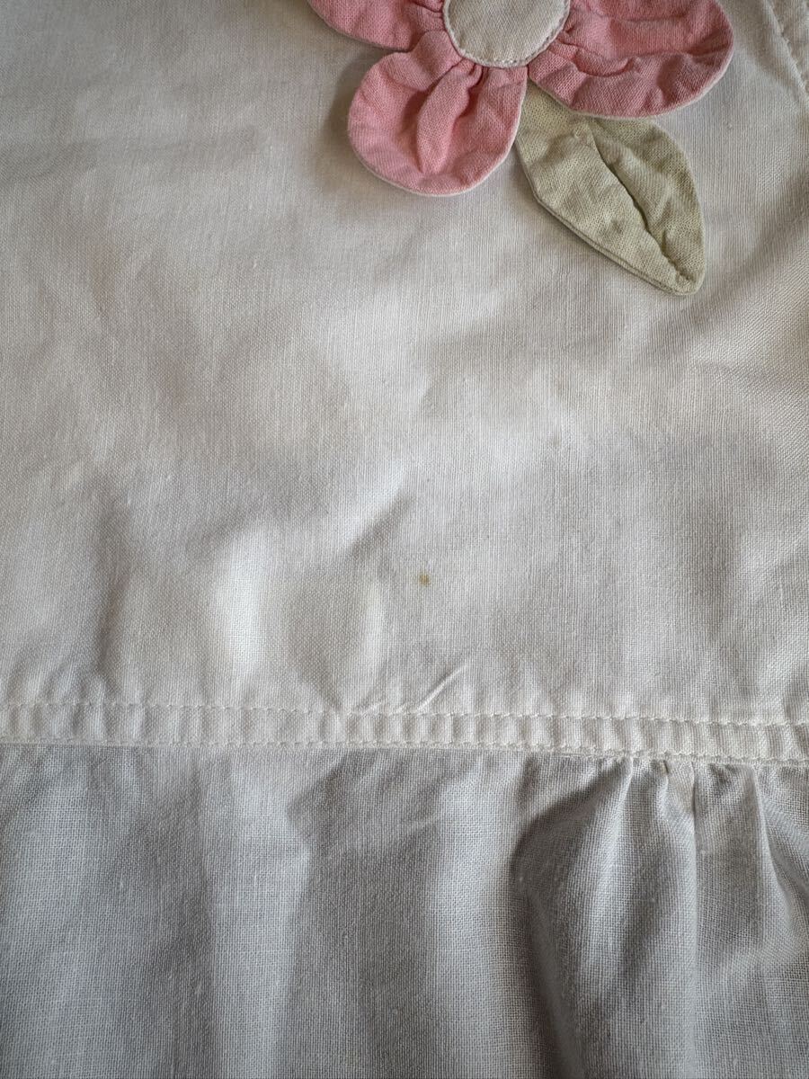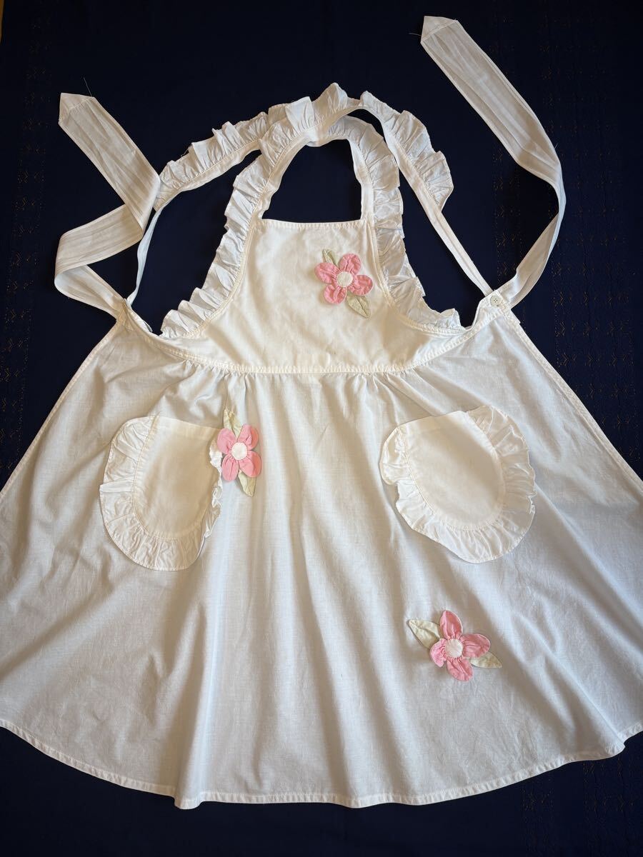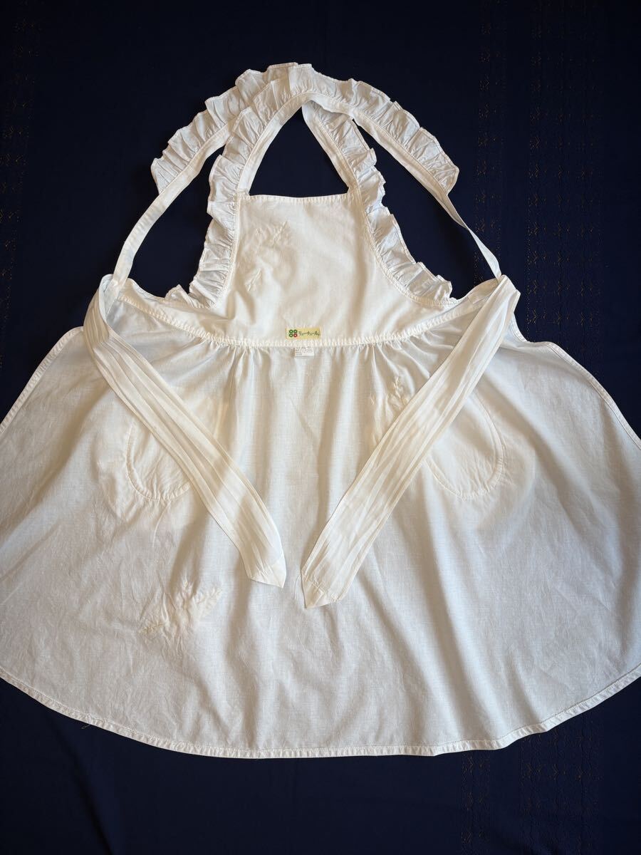 花付き 白 エプロン コットン100% 日本製。ウェストより総丈59㎝ 裾幅1m40㎝