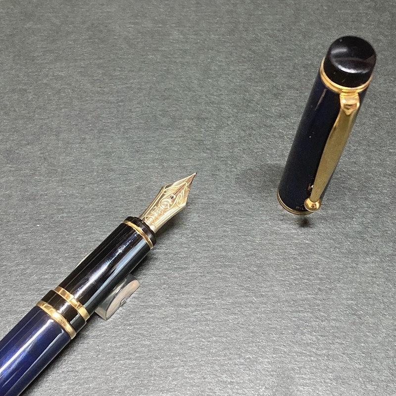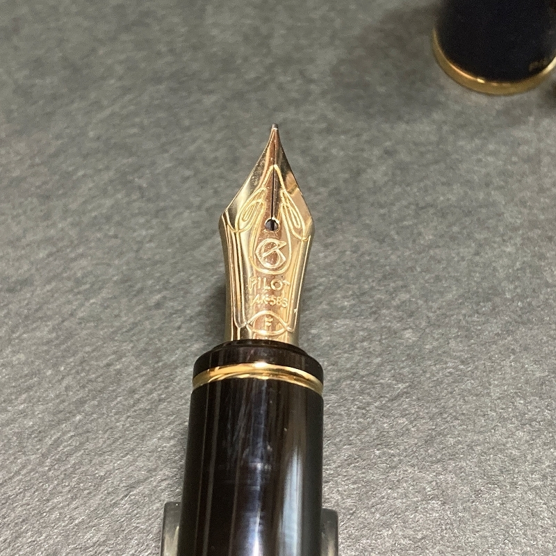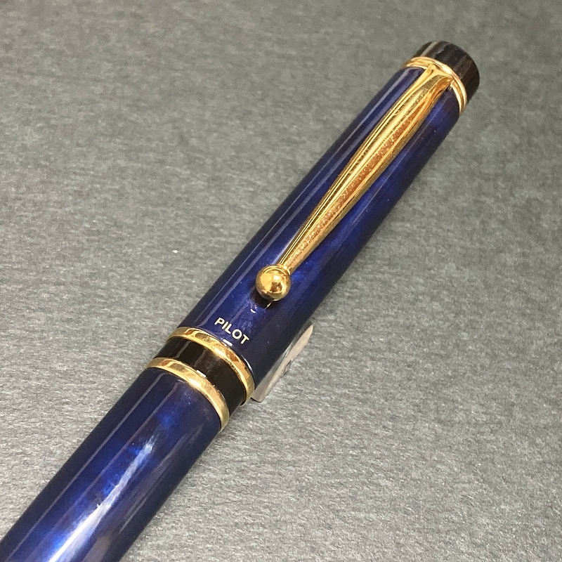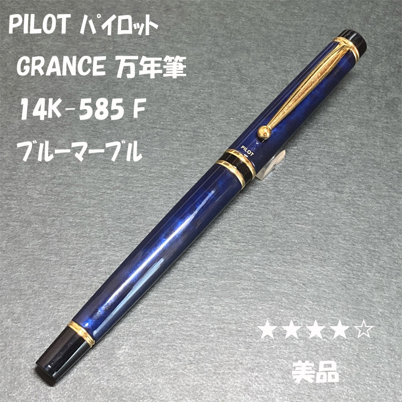 送料無料☆美品☆PILOT GRANCE 万年筆 14K-585 F ブラック&ブルー マーブル/パイロット グランセ 廃盤 金ペン ステーショナリー★4Pen