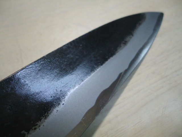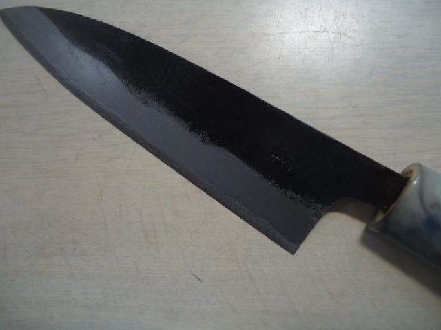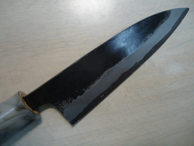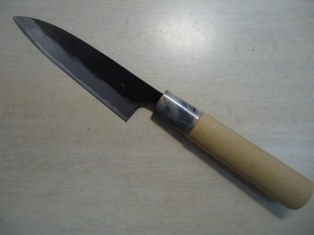 | 商品説明 | ご面倒でも必ず注意事項等お読みの上、ご入札ください。トラブルの元です 営業日以外連絡発送できません!従って送料連絡も営業日・営業時間内になります。 《店休》 土日祭日 年末年始・12月23日~1月7日 ゴールデンウイーク 盆 8月13日~16日 土佐鍛冶屋 邑田武男作 手打ち鍛造手造り 魚の【サバキ】に重宝 両刃だから右利き左利き問いません 刃渡り 120mm 重量 78g 厚さ 約3mm 最大幅 約33mm ☆ 備 考 新品の刃物は・・・ *本来刃物はメーカーより機械研ぎで入荷します。砥石で研いだ刃物の入荷は殆どありません。もちろん新品の切れ味はありますが、本当の切れ味をお望みであれば・・・ 新品もまず砥石で研いでご使用された方が、本来の切れ味が楽しめます。 本刃付けも承っております。ご希望の方は取りナビにてご連絡ください。 【6000番仕上げ砥石】三徳包丁 700円~ 出刃・刺身 900円~材質・サイズによって変わります。 手研ぎの為研ぎ跡が必ず付きます! 在庫管理に努めておりますが、店舗で販売もしておりますので、万一品切れの際はキャンセルさせて頂くか、お待ちいただく場合がございます。 | |