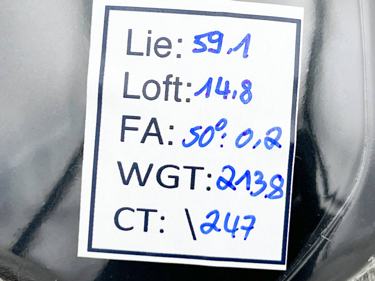 CT値 247 ロフト15°表記(リアルロフト 14.8°) ライ角 59.1° F.A(フェースアングル)0.2°OPEN(ほんの少し右向き、ほぼスクエア)