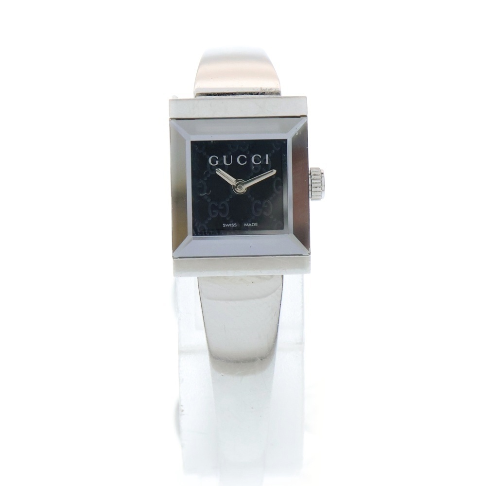 GUCCI グッチ スクエアフェイス ブレスウォッチ GGパターン 黒文字盤 クォーツ アナログ 腕時計 シルバー/ブラック 128.5