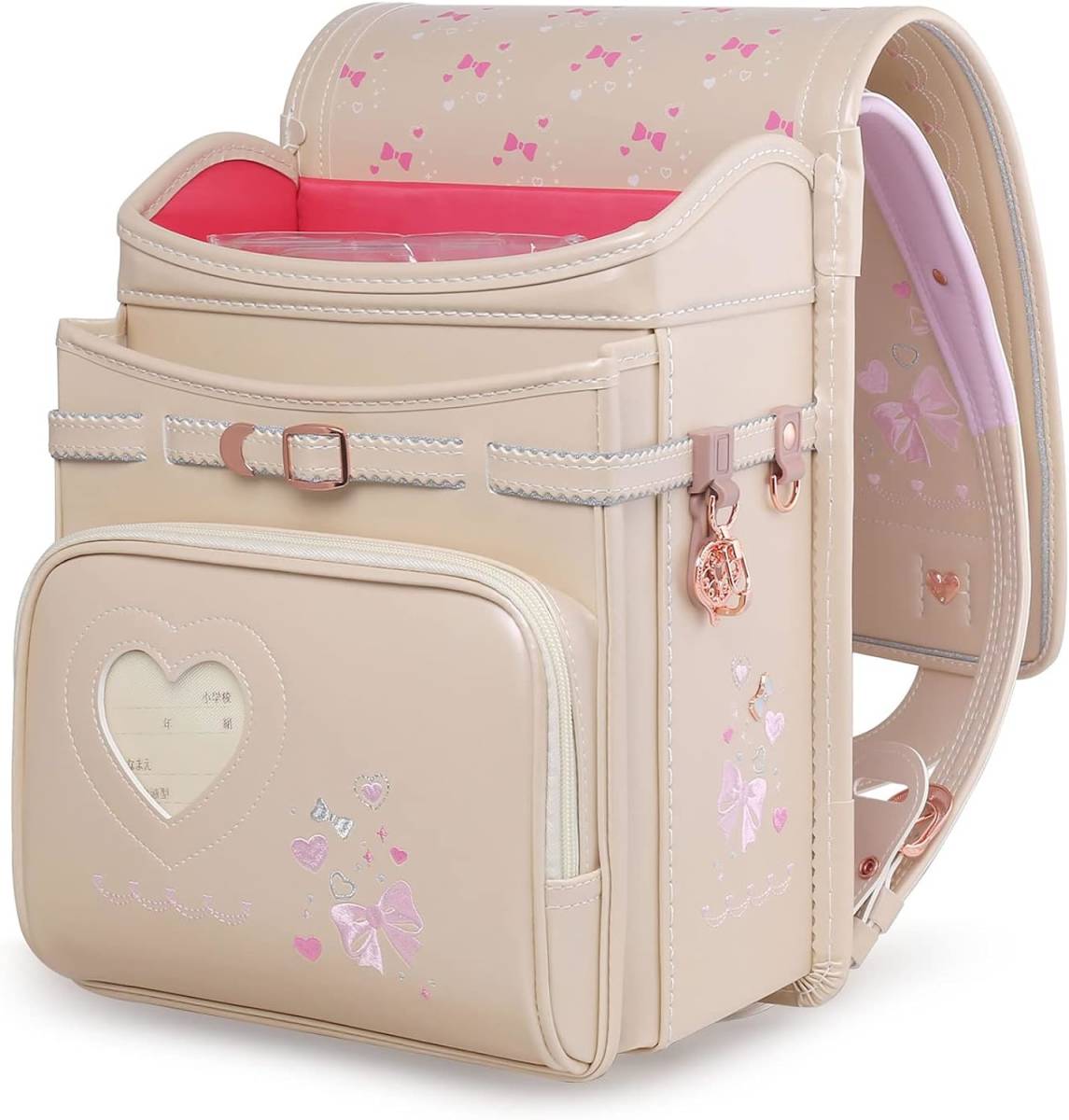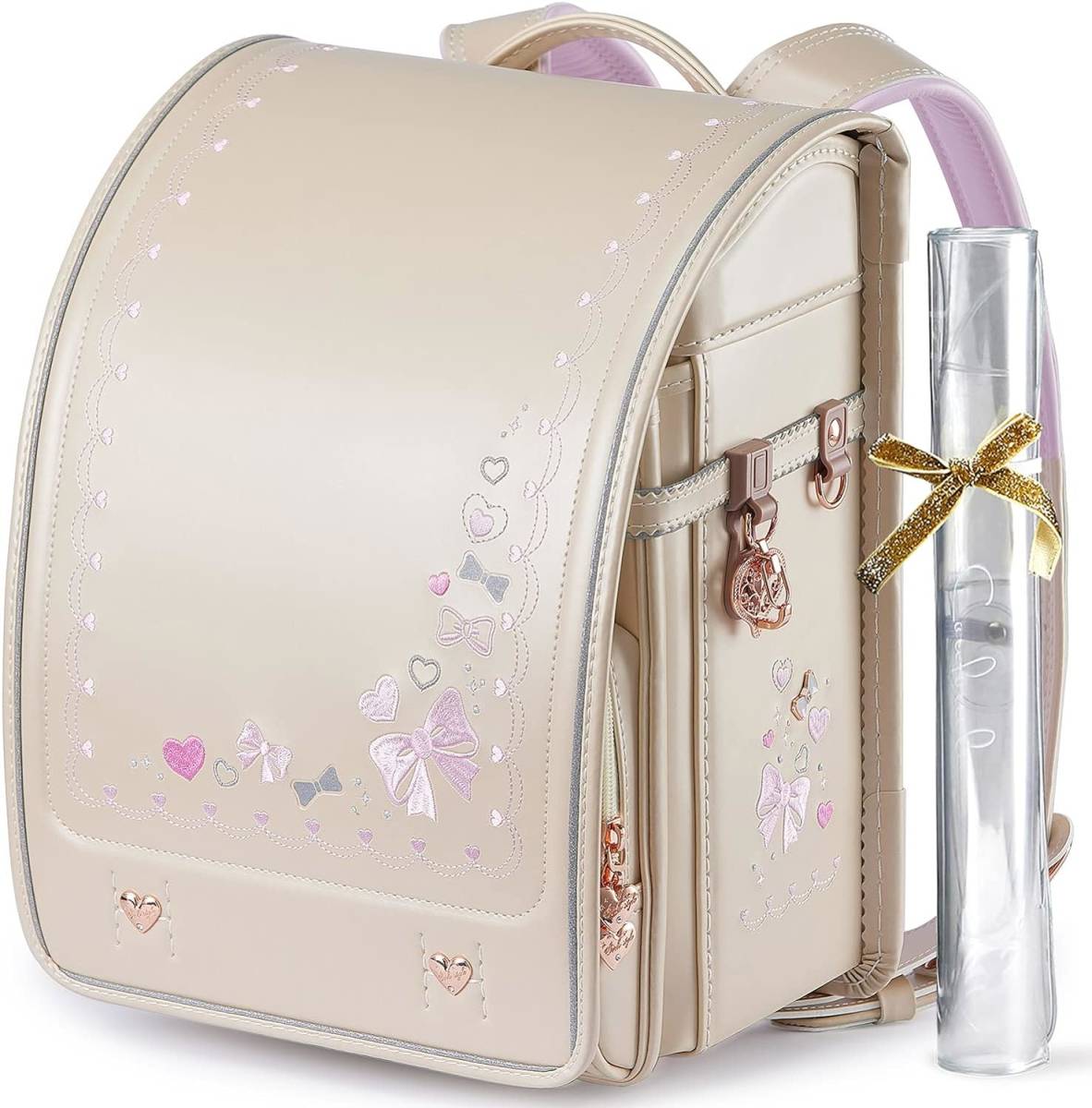 【新品】大人気 女の子ランドセル リボンモデル 高級 パール生地 6年保証 全国送料無料 スクールバック 小学生通学カバン ベージュ③