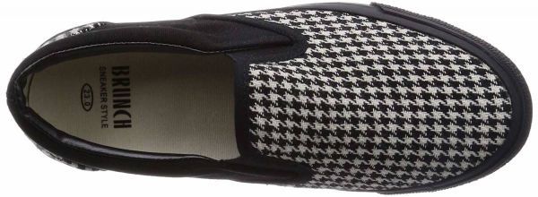 サイドゴア スリッポン 23.5cm 新品 訳☆フラットシューズ スリッポンスニーカー 千鳥柄 黒☆BRUNCH ブランチ BR127BK23.5