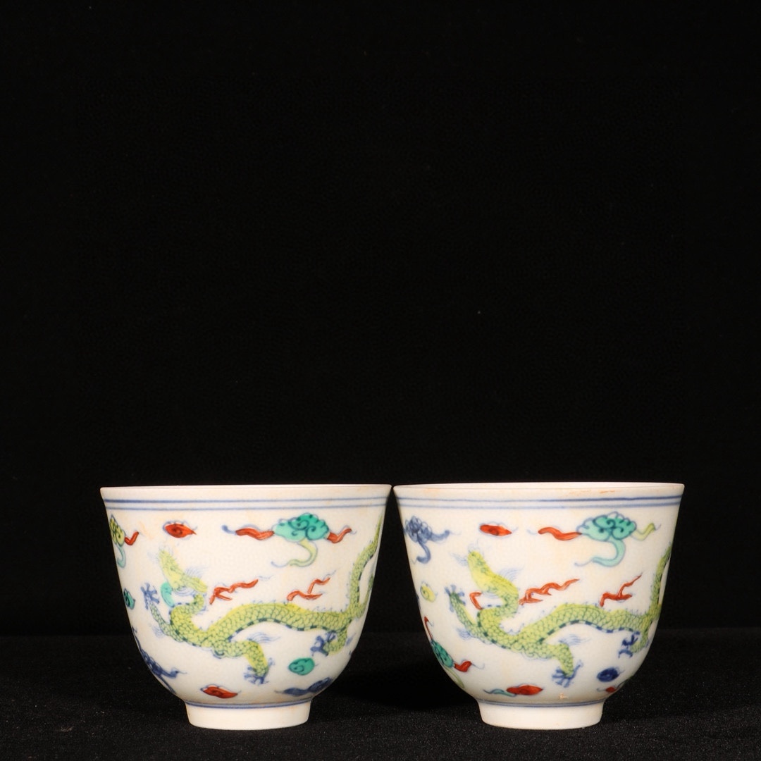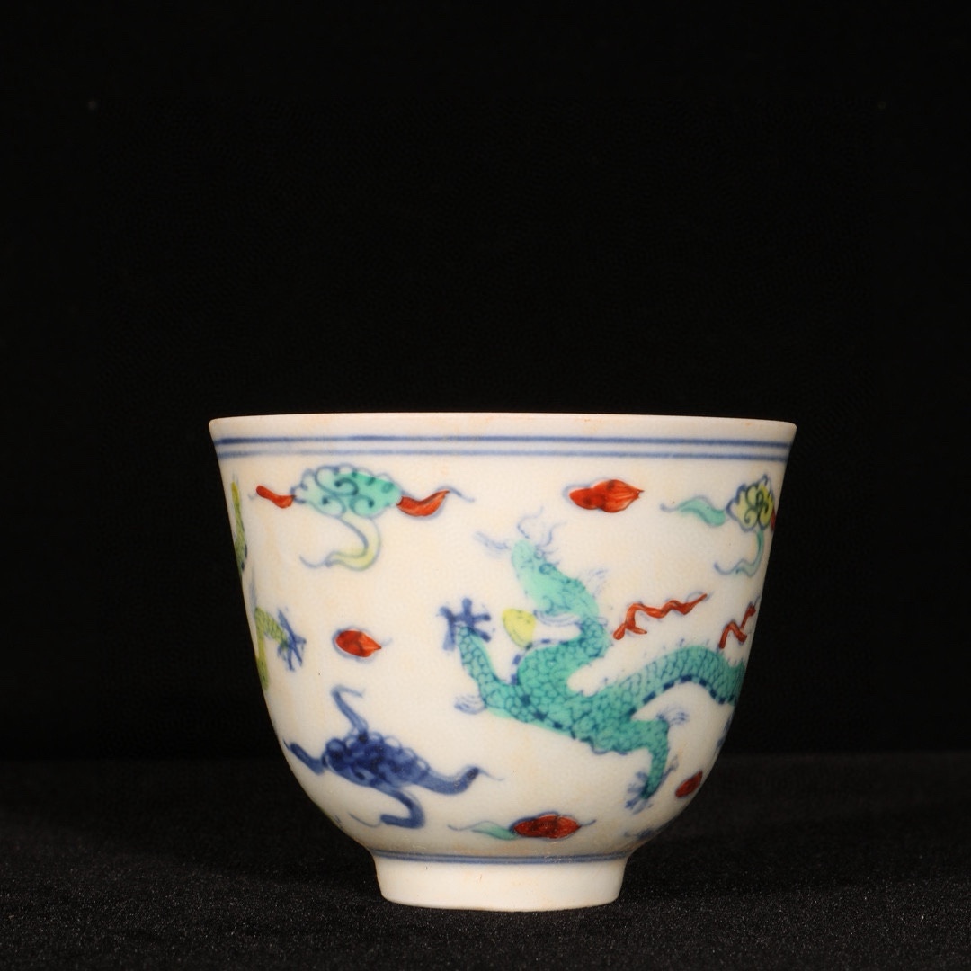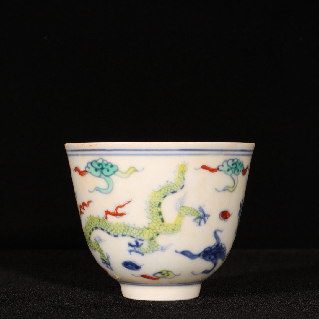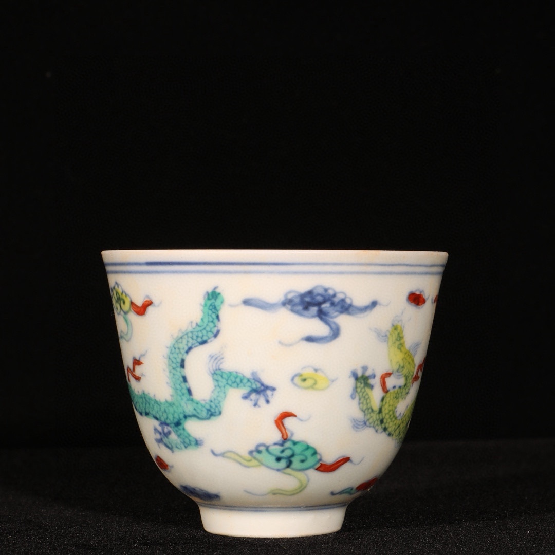 明時代 成化年製 闘彩龍紋杯 共箱付き 陶磁器 中国美術 高さ6 cm 直径7.3 cm 骨董品 唐物 808