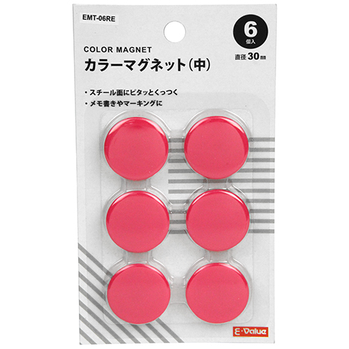 E-Value カラーマグネット 直径30mm 6個入り レッド EMT-06RE 中 磁石 マグネット ホワイトボード キャビネット 冷蔵庫