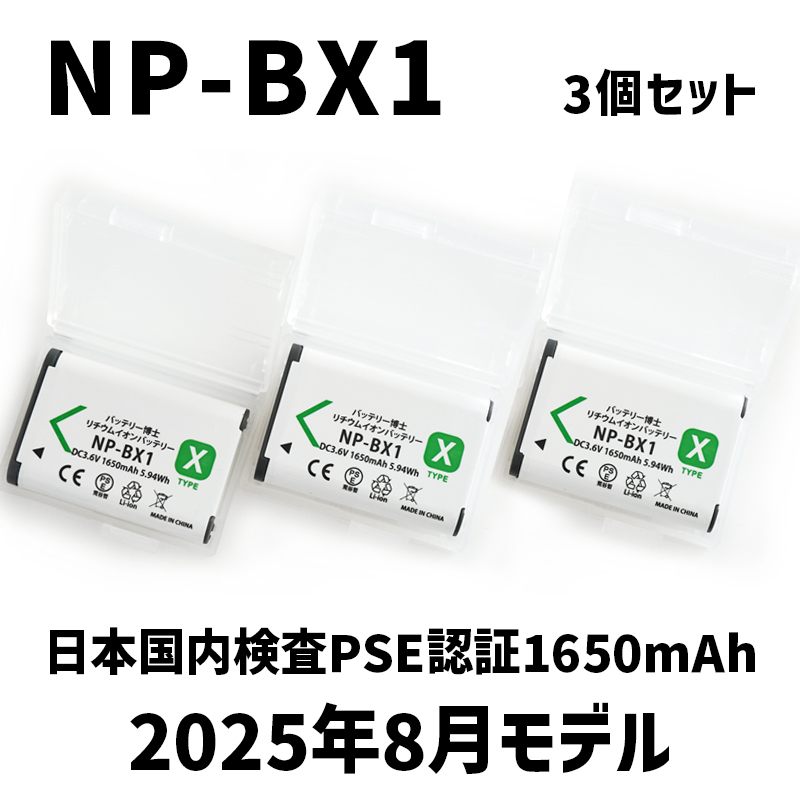 PSE認証2025年8月モデル 3個 NP-BX1 互換バッテリー サイバーショット DSC-RX100 M7 M6 M5 M3 M2 HX99 HX300 400 CX470 WX500 AS50 ZV-1