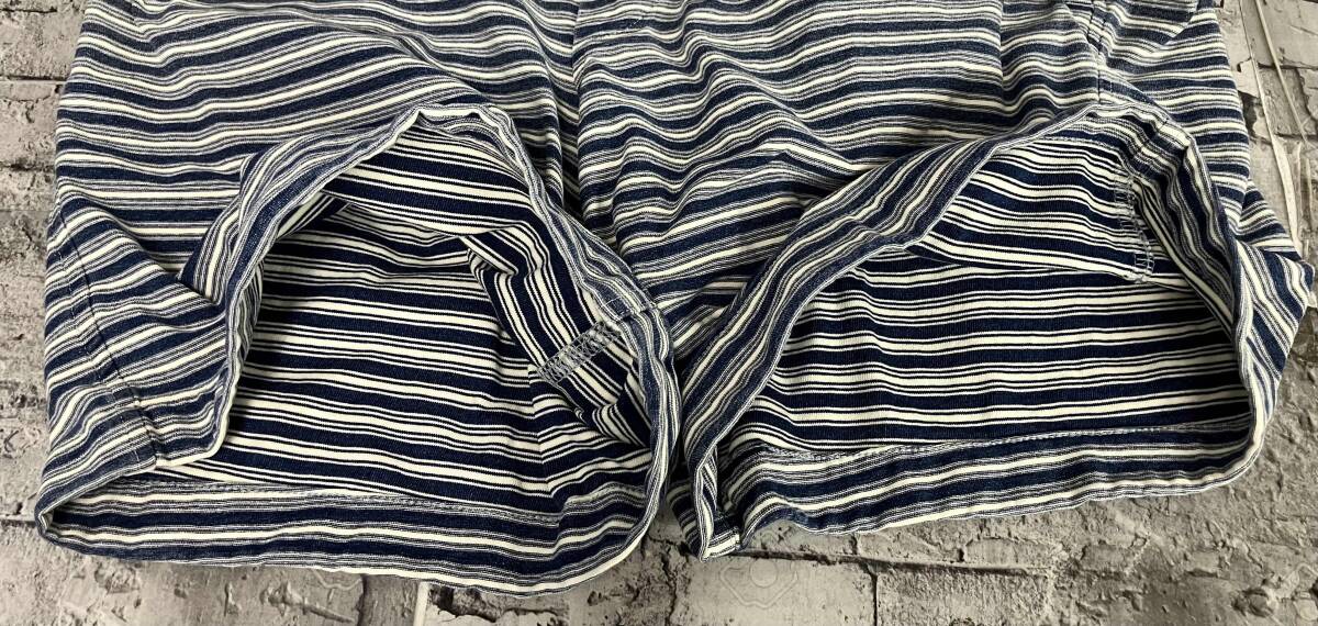 RRL RALPH LAUREN ダブルアールエル ラルフローレン ボーダーショーツ ハーフ綿パン サイズSP ブルー ホワイト ・全体的使用感、色褪せあり サイズ(単位:センチメートル) 股上:約35 股下:約18 ウエスト:約76 ヒップ:約60 わたり幅:約33 裾幅:約31 |