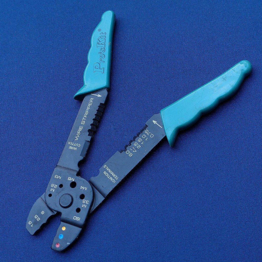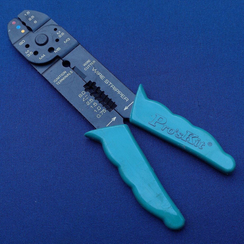 圧着ペンチ 電工ペンチ Pro’sKit 圧着工具 全長約200㎜ ワイヤーカッター ワイヤーストリッパー   【2238】