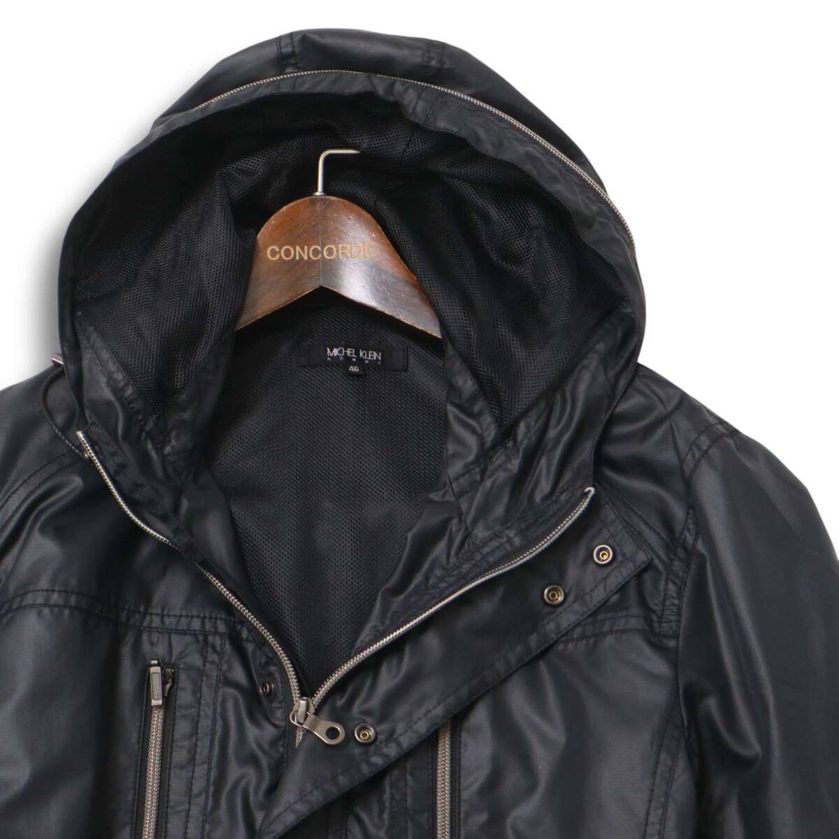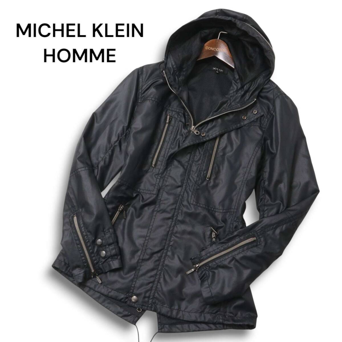 MICHEL KLEIN HOMME ミッシェルクラン オム 裏メッシュ★ 微光沢 フーディー ジャケット ブルゾン Sz.46 メンズ 黒