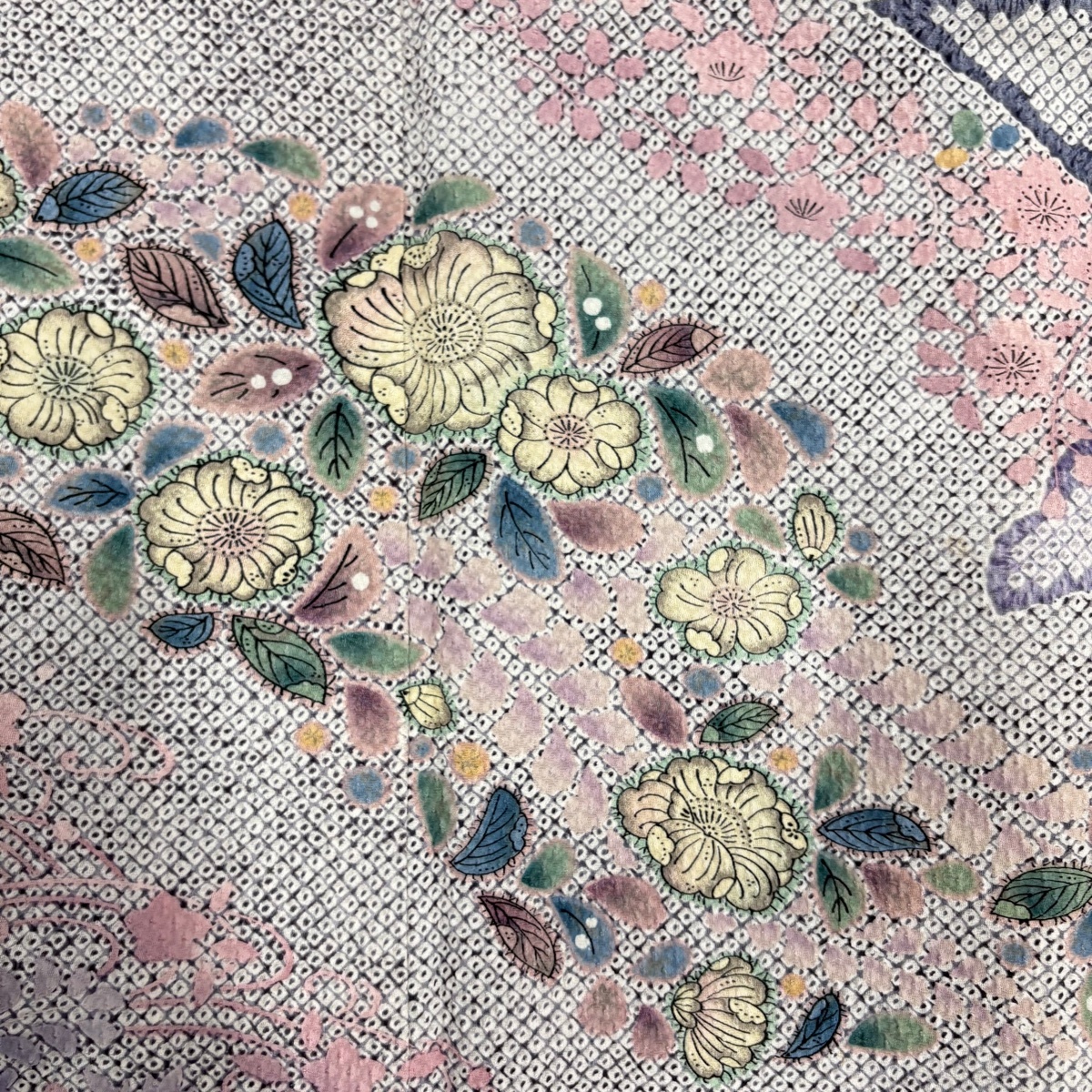 | 付下げ 秀品 辻が花柄 霞 絞り 薄紫 袷 身丈158 裄丈64 M 正絹 【中古】 |