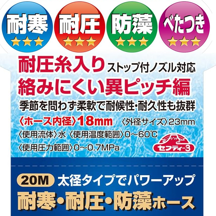 ◆セフティー3 日本製 サラッと耐寒耐圧耐藻ホースお取り扱い一覧はこちら↓◆