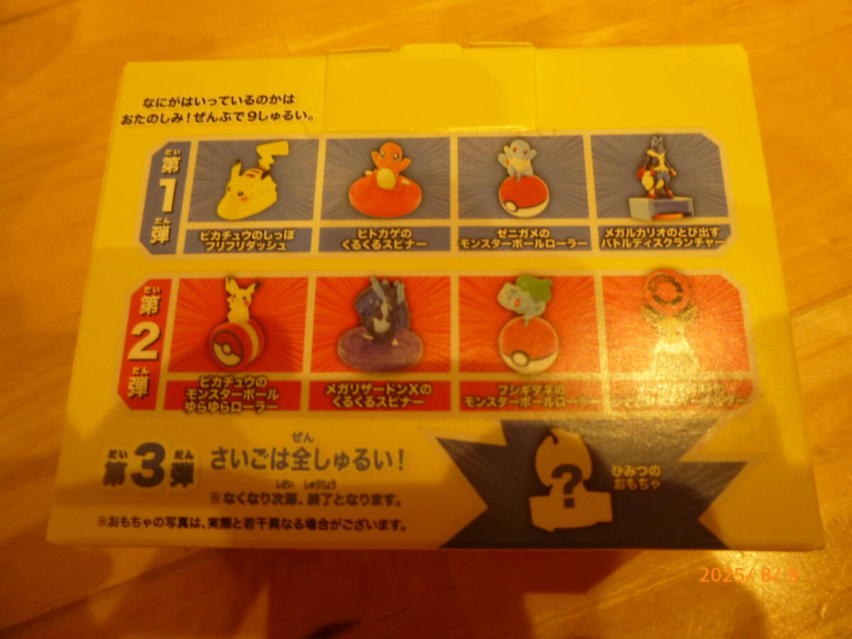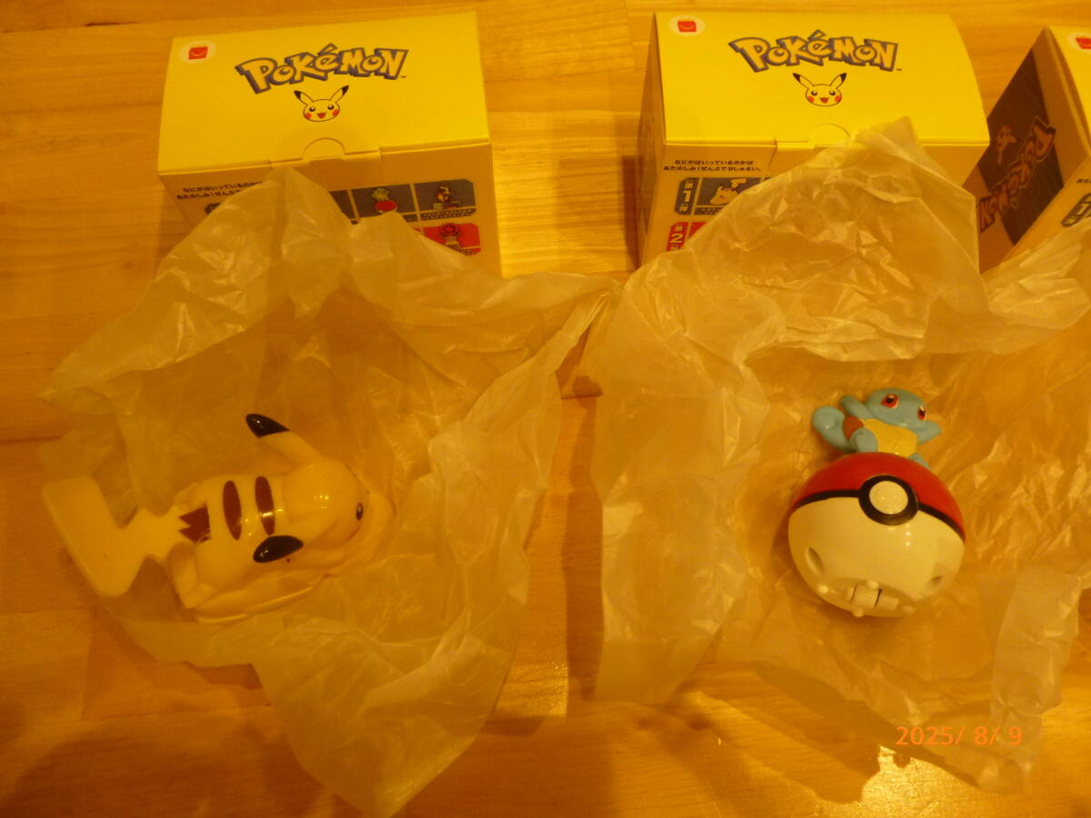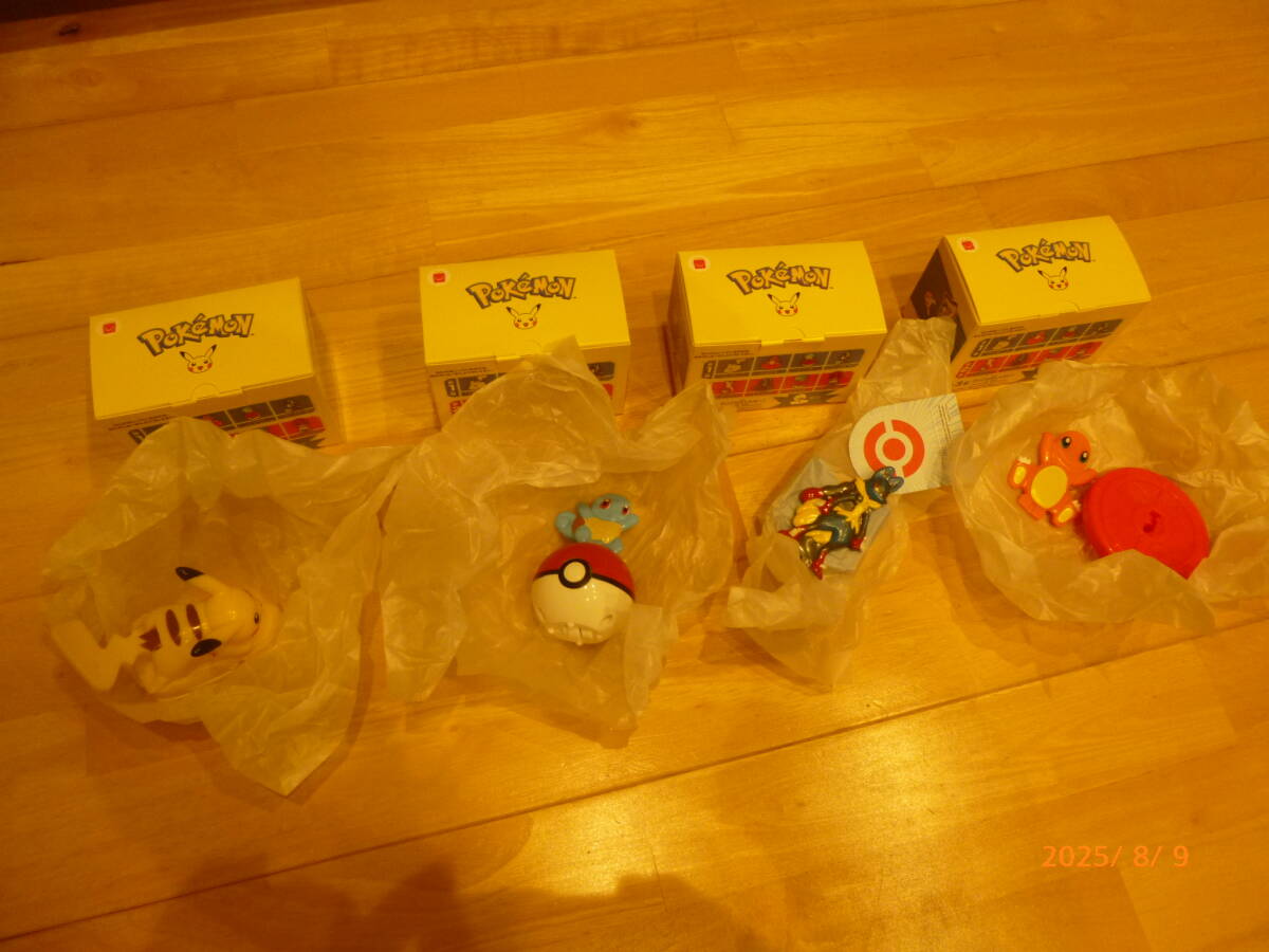 マクドナルド(マック)の現行ハッピーセットのおまけ「ポケットモンスター(ポケモン)」第一弾の全4種セットです。「ピカチュウのしっぽフリフリダッシュ」「ヒトカゲのくるくるスピナー」「ゼニガメのモンスターボールローラー」「メガルカリオのとび出すバトルディスクランチャー」の第一弾全4種のセット。内容種類の確認のための開封以外の未使用品です。箱及び内封取説付き。状態等十分確認はしていますがなにぶん素人の為、見落とし等ある場合がありますがその際はご了承下さい。基本的に新品の為、ノークレームでお願いします。商品説明の記載に関わらず写真の物以外の付属等はございませんので気になる事がある場合は事前のご質問をお願いいたします。ご質問はお気軽に。 <お願い>一部の方のせいで多くの方にはご迷惑をお掛けしますが、最近落札後に連絡をしてこないままの常識のないキャンセルが多発している為にお願いをいたします。オークション終了後3日以内のご連絡と5日以内(最終日に土日がかかる場合を除く)の入金が出来ない方は基本的には落札者都合にてキャンセル処理をさせて頂きます。一般的に考えて常識の範疇ではありますがご了承ください。何か事情のある方は早めのご相談をして頂く事を申し上げておきます。