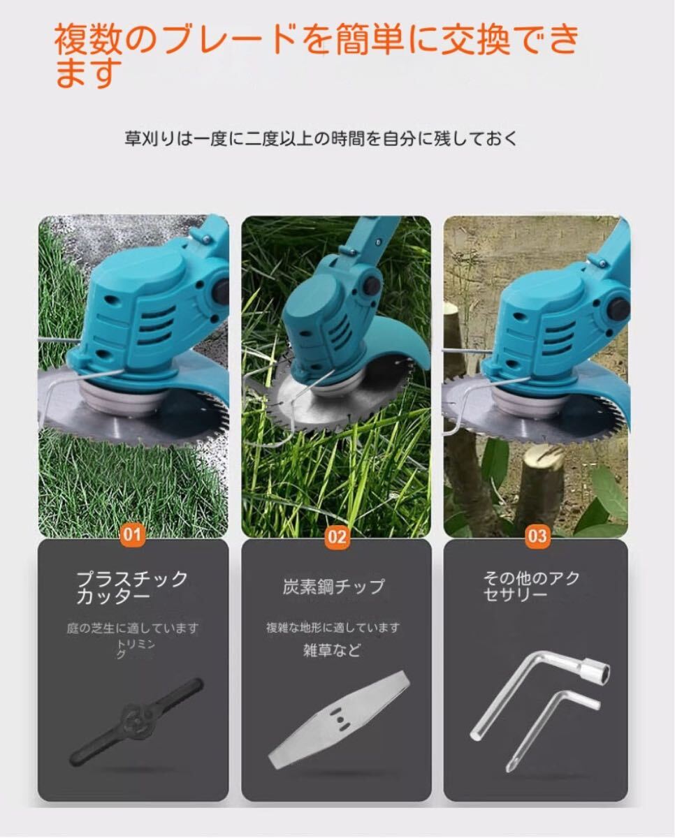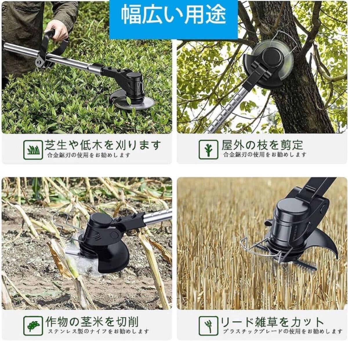 送料無料 草刈り機 充電式 草刈機 電動草刈機 バッテリー2個 替刃8枚付 21V コードレス 多機能 電動刈払機 伸縮式 3種類替刃 芝刈り機