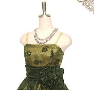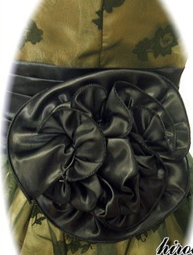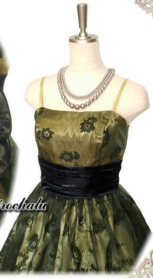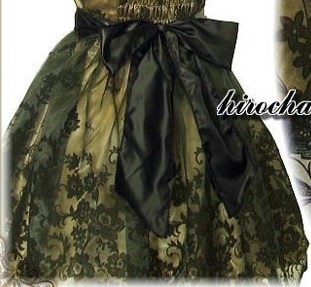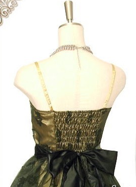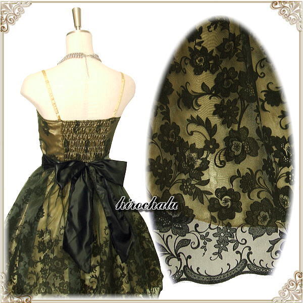 ゴールドサテンと黒のオーガンジーが豪華なコサージュ付ドレスワンピースです。光沢のあるゴールドのサテン生地の上に立体的な花模様浮かび上がる黒のオーガンジーの2枚仕立て。艶のある黒の幅広ウエストリボンを背中で結び、取り外し可能な黒の大きな2枚の花のコサージュをお好きな場所にあしらうと、フェミニンで上品なプリンセスの誕生です。背中側ゴム仕様。肩紐調整可能。サイドファスナー。