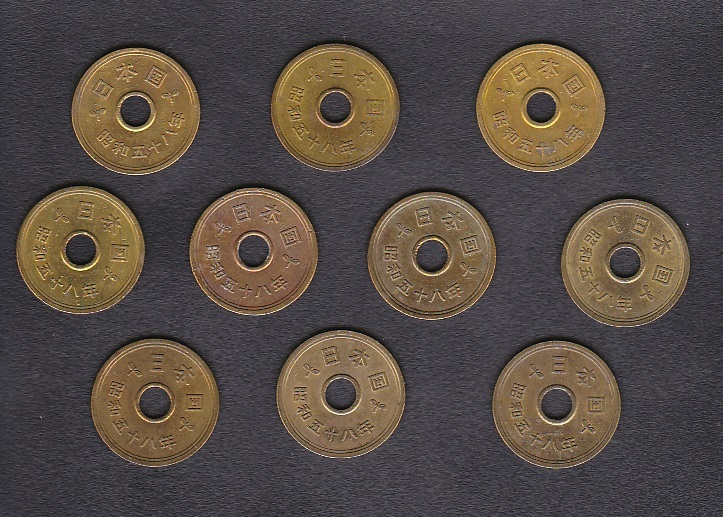 昭和58(1983)発行の5円硬貨 10枚です。