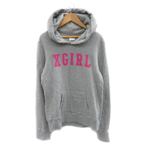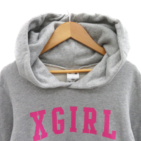エックスガール x-girl パーカー スウェット プルオーバー プリント 2 グレー ピンク /YK19 レディース