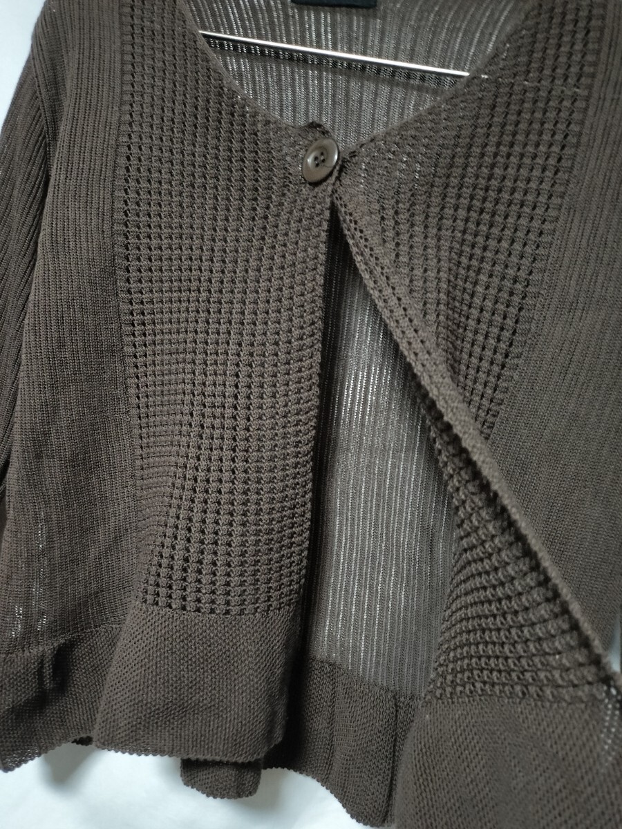 通気性の良いメッシュ編みの薄手カーディガンです。