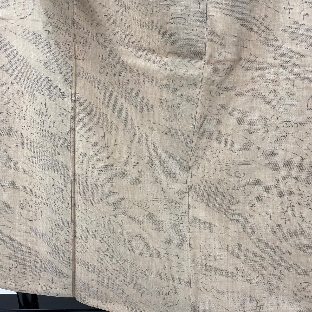 | 茨城県結城市と栃木県小山市周辺で生産される結城紬です。 結城独特の柔らかい温かみのある肌触りで、暖かく軽くて着心地もよいです。 身丈を+3.0cm程、現在の長さから伸ばせます。 裄丈を+3.0cm程、現在の長さから伸ばせます。 衿周りや両袖口中に汚れ、下前にシワがございます。 裏地両脇に薄い汗シミがございます。 リユース品としては良い状態で、まだまだご活用頂けると思われます。 ※なお、厳しく商品の状態確認を行っておりますが、記載の汚れ以外にも見落とし箇所がある可能性がある旨ご了承いただけますと幸いです。 沢山の商品の中からご覧いただき誠にありがとうございます。 |