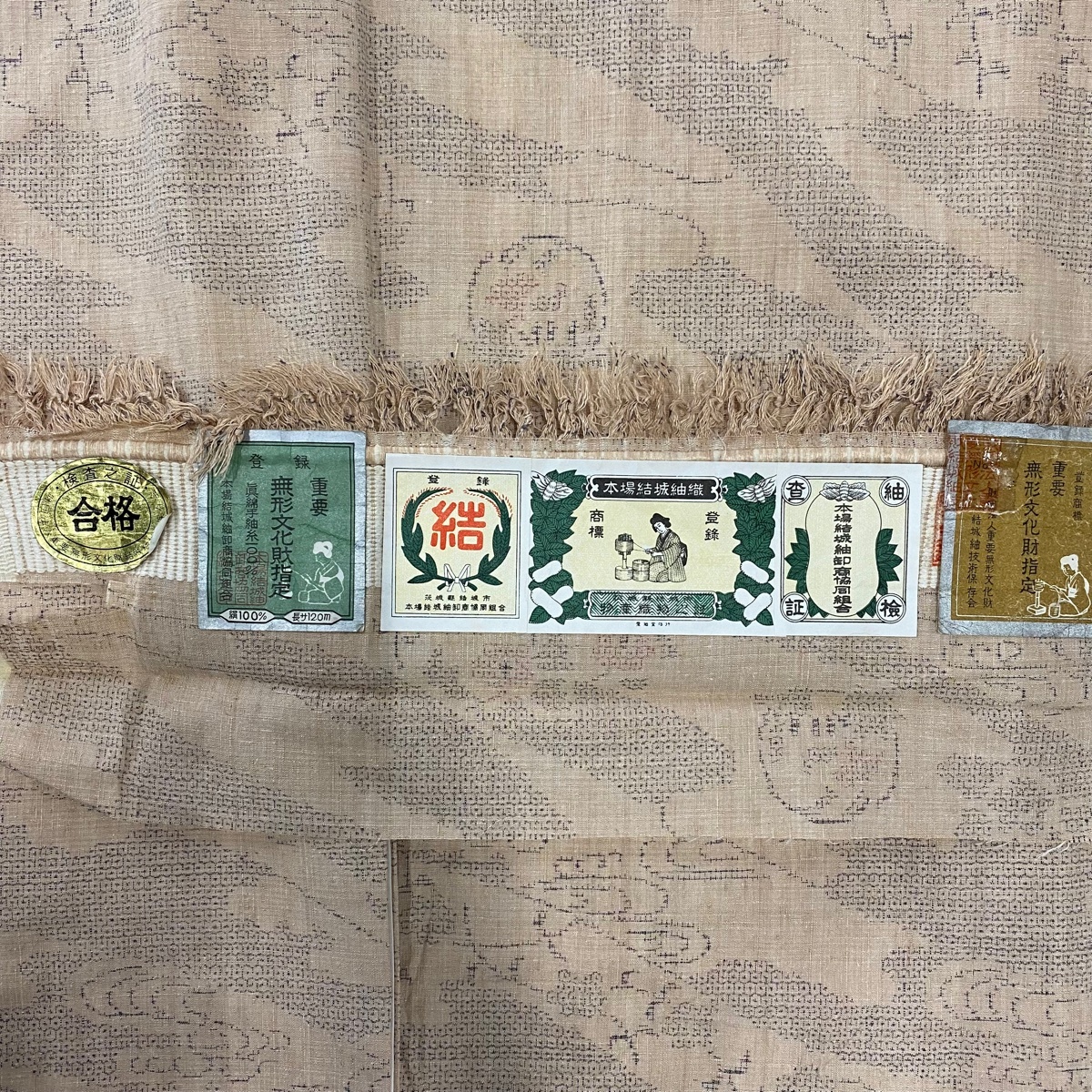 | 結城紬 逸品 証紙 本場結城 草花 霞 薄小豆 袷 身丈160 裄丈64 M 正絹 【中古】 |