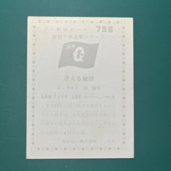 1976年 カルビー プロ野球カード 76年 756番 巨人 ライト   WKI50