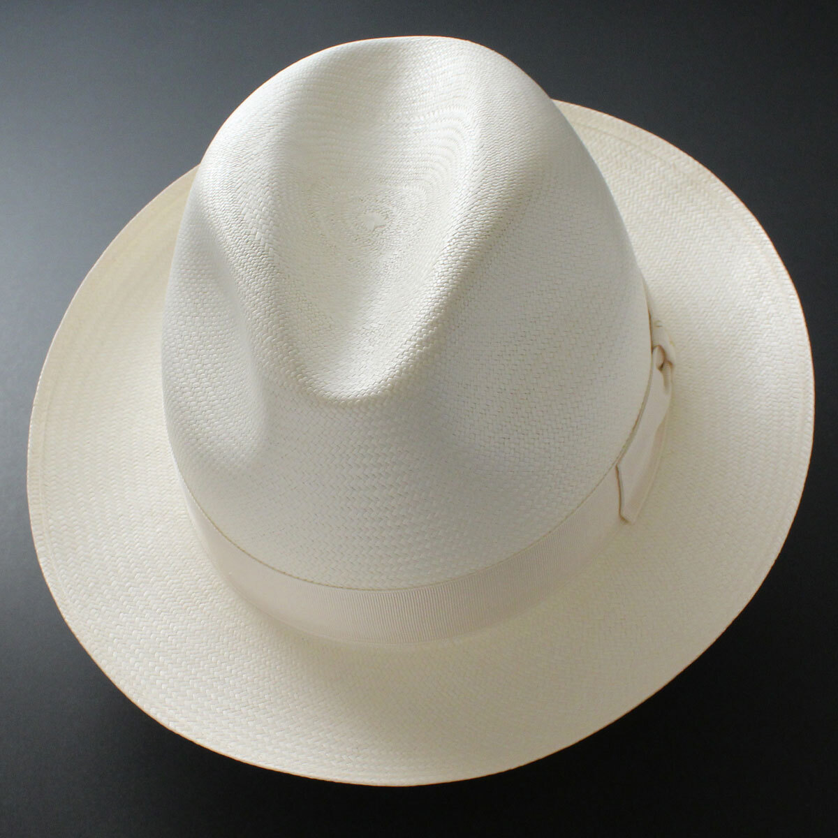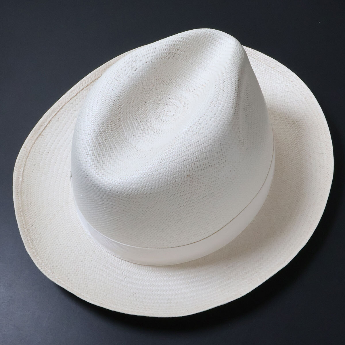 Borsalino ボルサリーノ 高級パナマ帽 ボルサリーノは、1875年創業、イタリアの老舗帽子ブランドです。 その名は、紳士帽の代名詞としても語り継がれています。 150年を経た今日でも、今世紀初頭の機械&木型を使った熟練職人による手作りで製造されています。 こちらは、ひとつ上のクラス「ファイン」になります。 ファインの特徴は、編み目の細さと軽さ、 そして、この素材ならではの白い輝きがボルサリーノらしさを演出しています。 ボルサリーノのクラシックスタイルであるセンタークリース&フロントピンチのフォルムに 上質なグログランリボンがほどこされています。 グログランリボンには、金箔でボルサリーノのロゴ刻印がおされています。 品名:パナマ ファイン ミドルブリム 本体カラー:アイボリー系ホワイト リボンカラー:アイボリー系ホワイト 表記サイズ:61 実寸サイズ:頭周り内寸約61㎝、ブリム(ツバ幅)6cm、クラウン高さ11.5㎝、リボン幅3cm 素材:PAGLIA100%(天然草) 定価:58,300円(税込) |