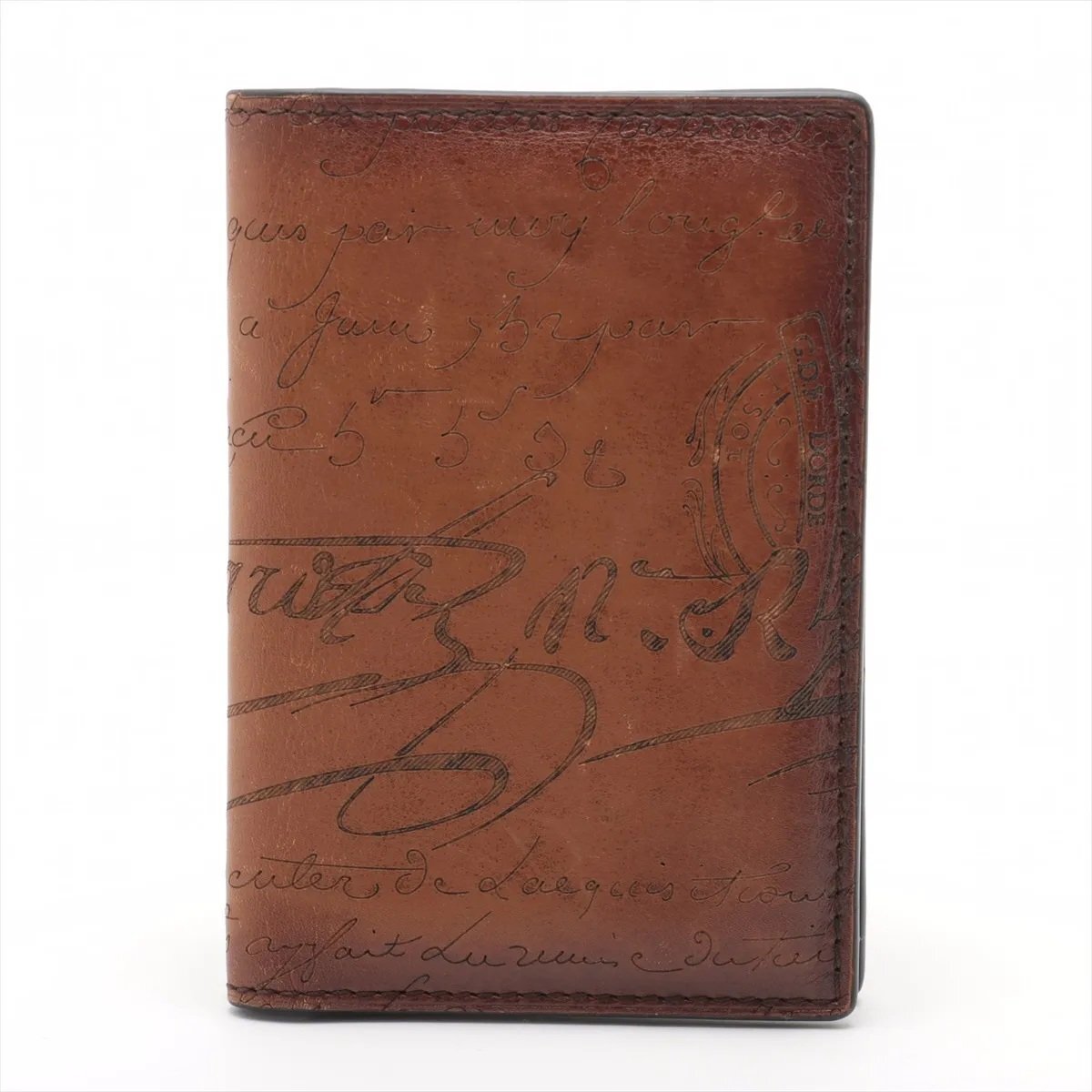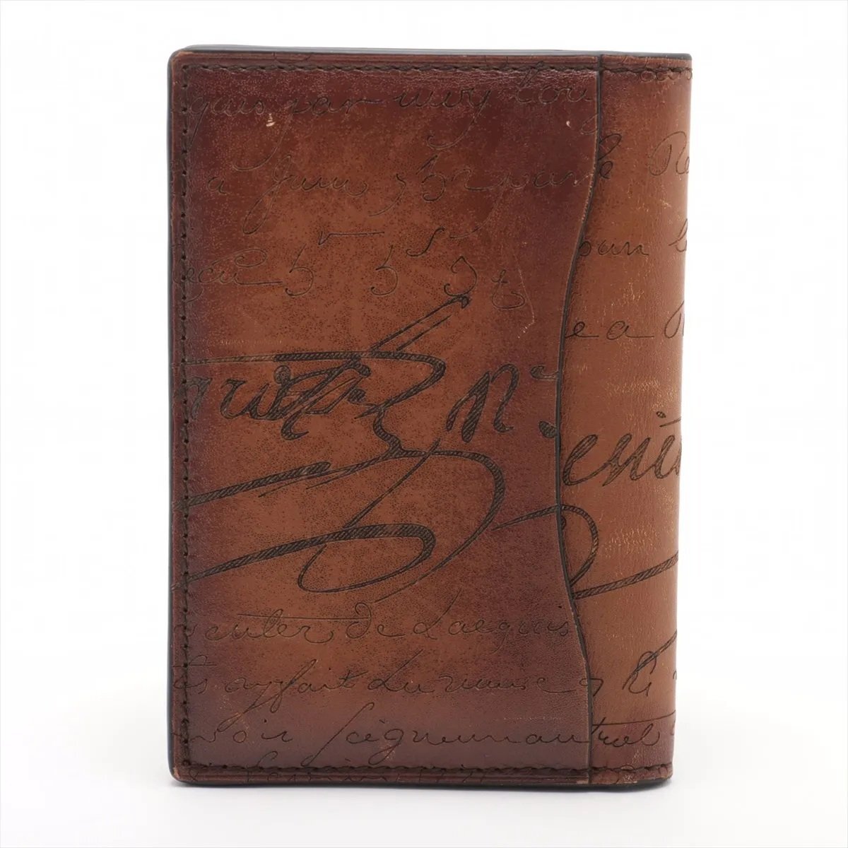 1円■美品■ベルルッティ■ジャグア カリグラフィ レザー カードケース 名刺入れ 本革 ブラウン 茶色 ブランド メンズ MMM CK50-2
