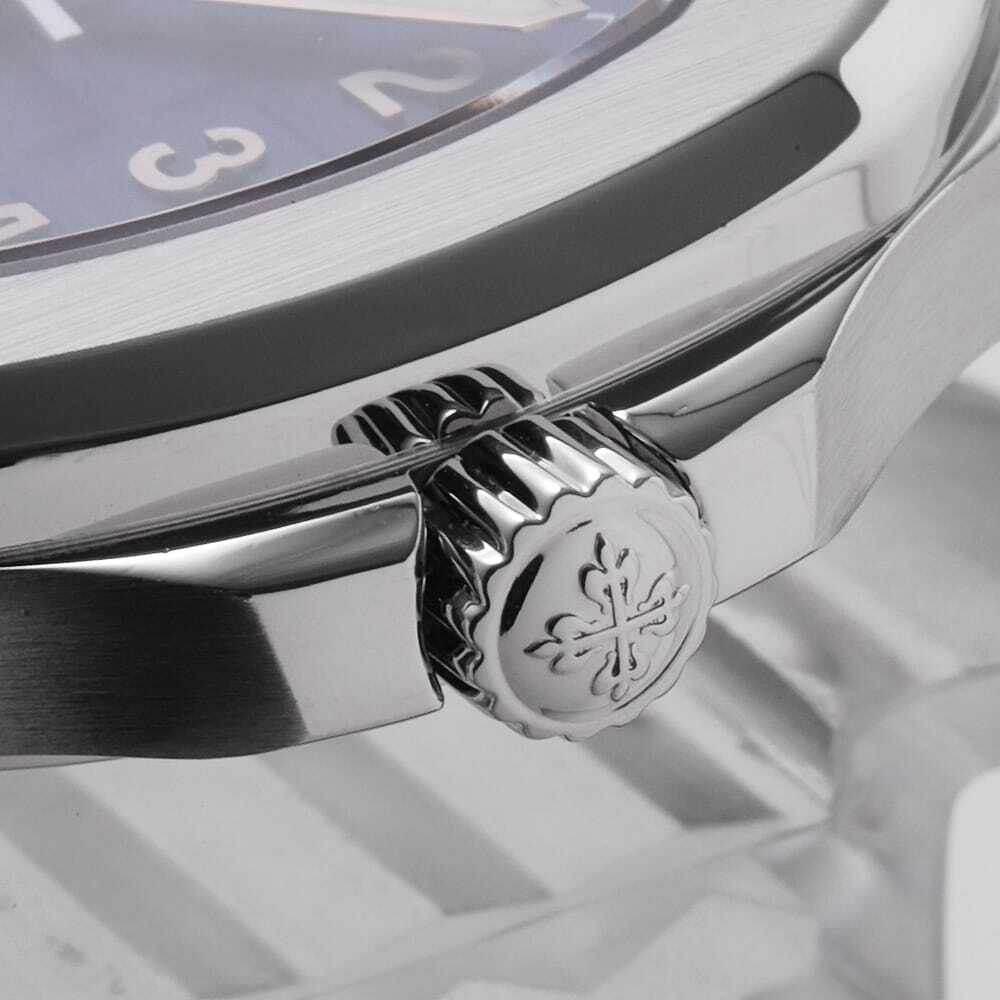 | モデル情報 | 「スポーツエレガンス」をテーマに誕生したコレクション、アクアノート。こちらのモデルは、文字盤の深いブルーが魅力の日本限定モデルとなっております。日本らしい美しさのあるブルーが印象的な、現在は生産終了されているモデルです。 |