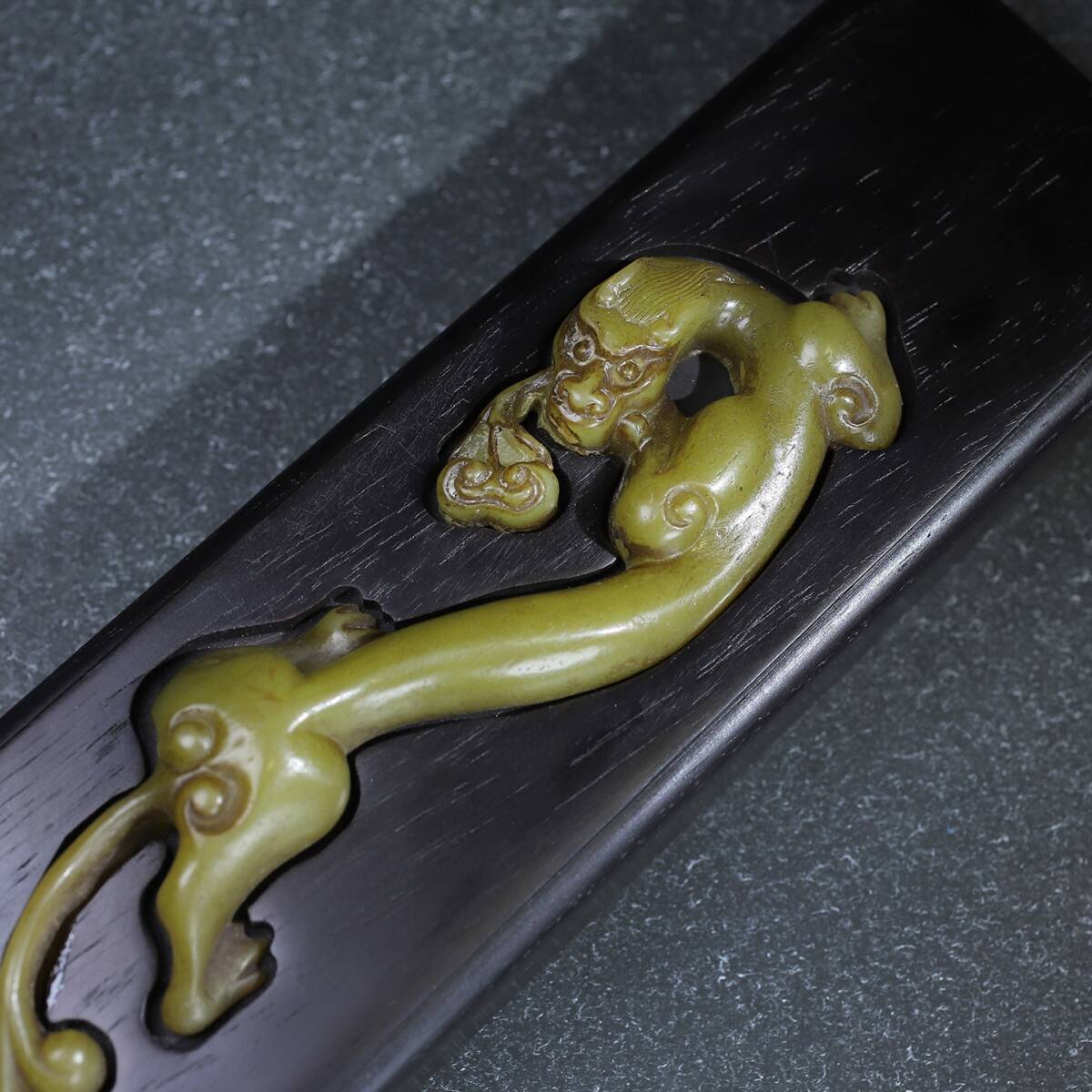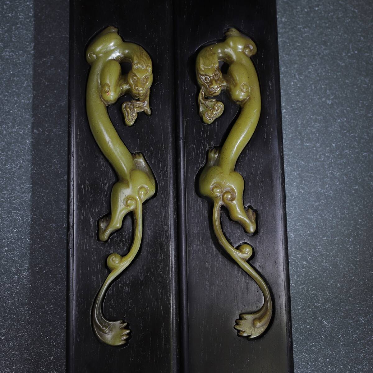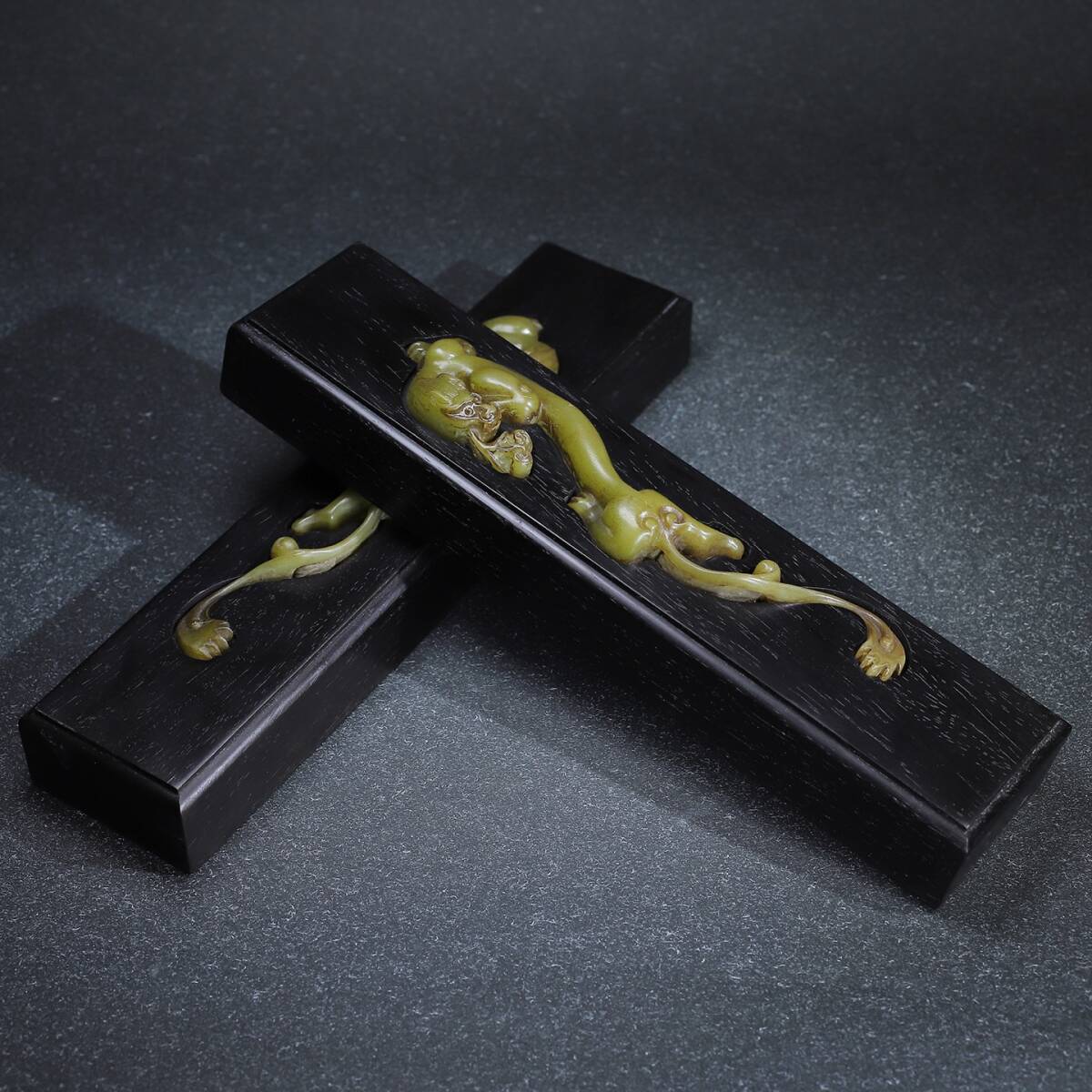 唐物 清 黑檀木 はめ込む玉 鎮紙 鎮尺一對 木製 極細工 中国古玩 骨董品 古美味 D68