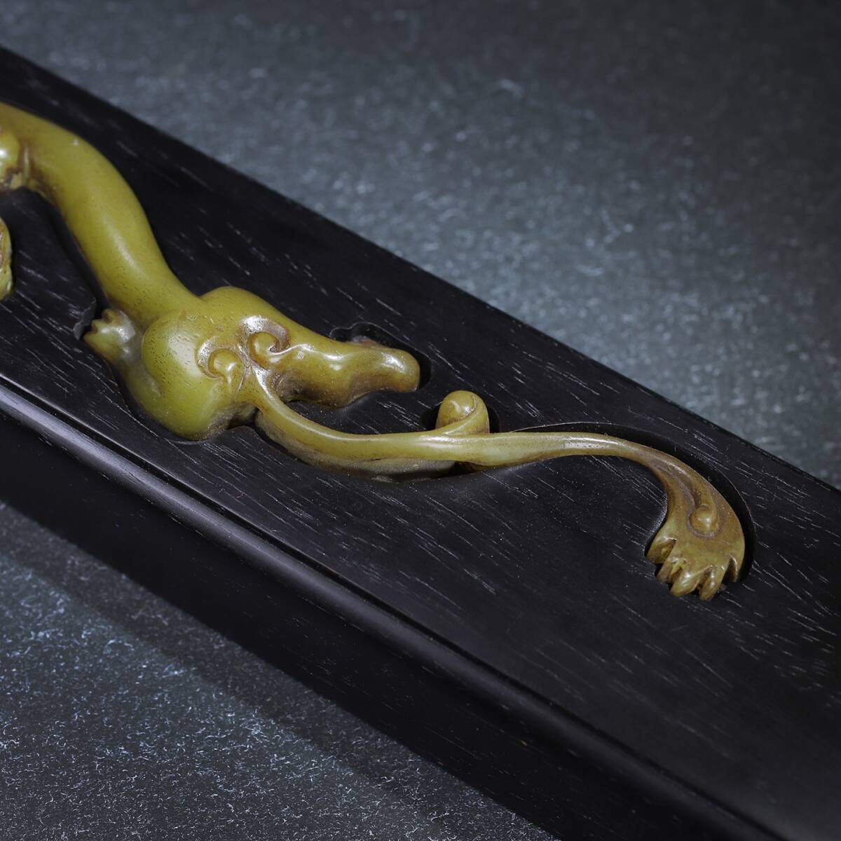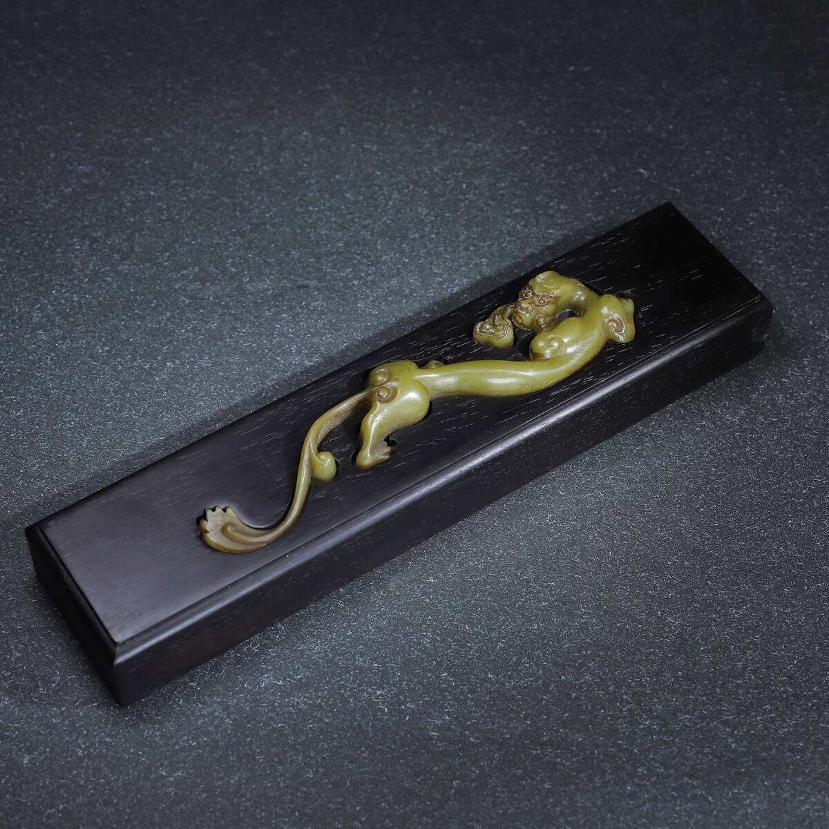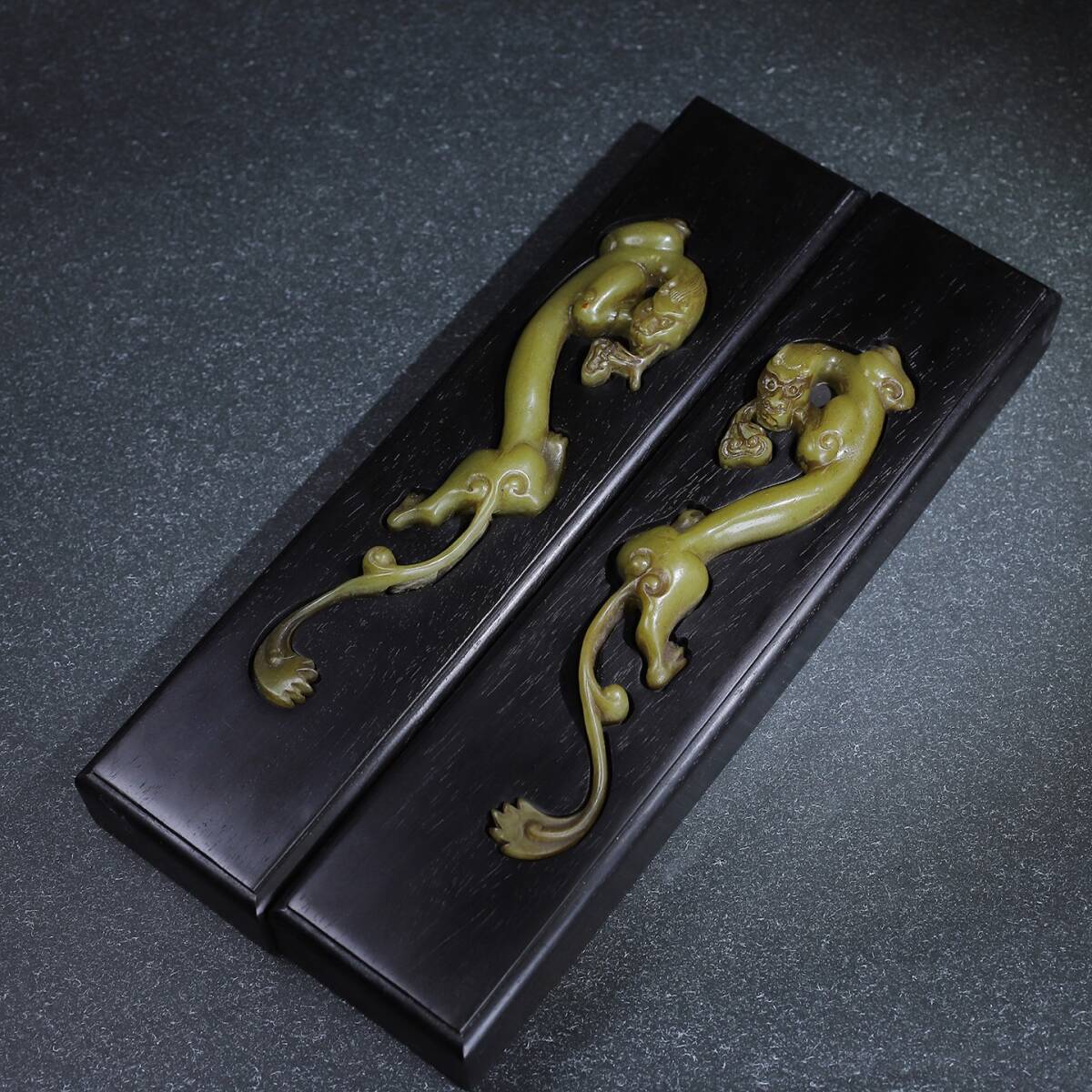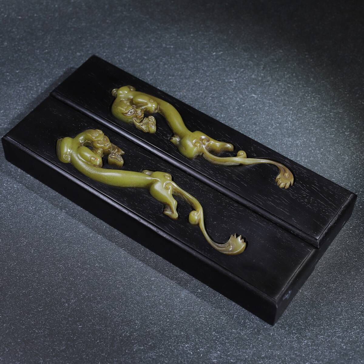 唐物 清 黑檀木 はめ込む玉 鎮紙 鎮尺一對 木製 極細工 中国古玩 骨董品 古美味 D68